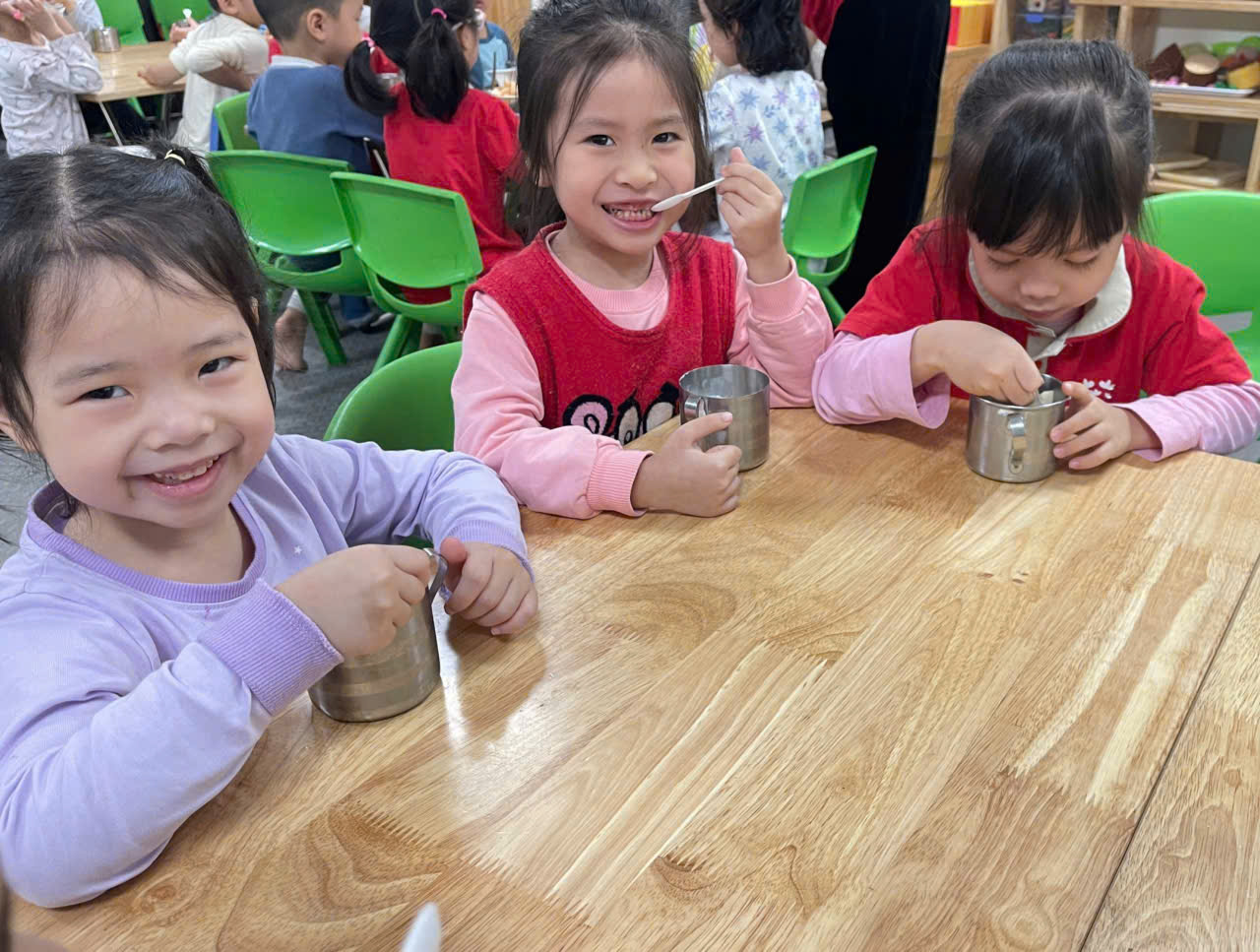 Những gương mặt rạng rỡ, những nụ cười tươi tắn khi thưởng thức thành quả của mình chính là niềm hạnh phúc lớn nhất của các cô giáo. Hoạt động này còn giúp các con học cách chia sẻ, nhường nhịn bạn bè khi cùng nhau thực hiện.