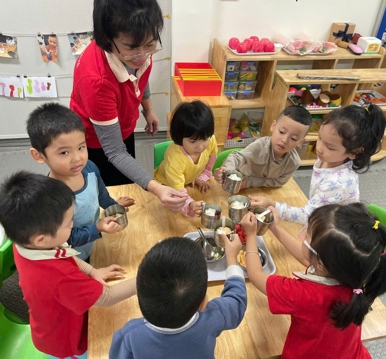 Hoạt động này không chỉ giúp các con rèn luyện sự khéo léo của đôi tay, khả năng phối hợp mắt – tay, mà còn phát huy tối đa sự sáng tạo khi tự tay "mix" món sữa chua theo sở thích riêng.