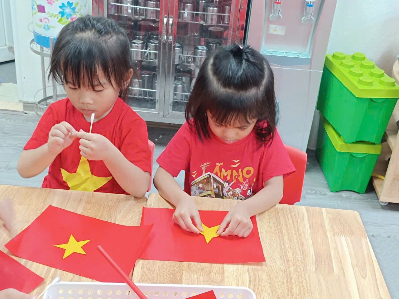 - Góc sáng tạo: Bé tập tô màu, dán cờ Đảng, cờ Tổ quốc và làm hoa mừng kỷ niệm ngày thành lập Đảng.