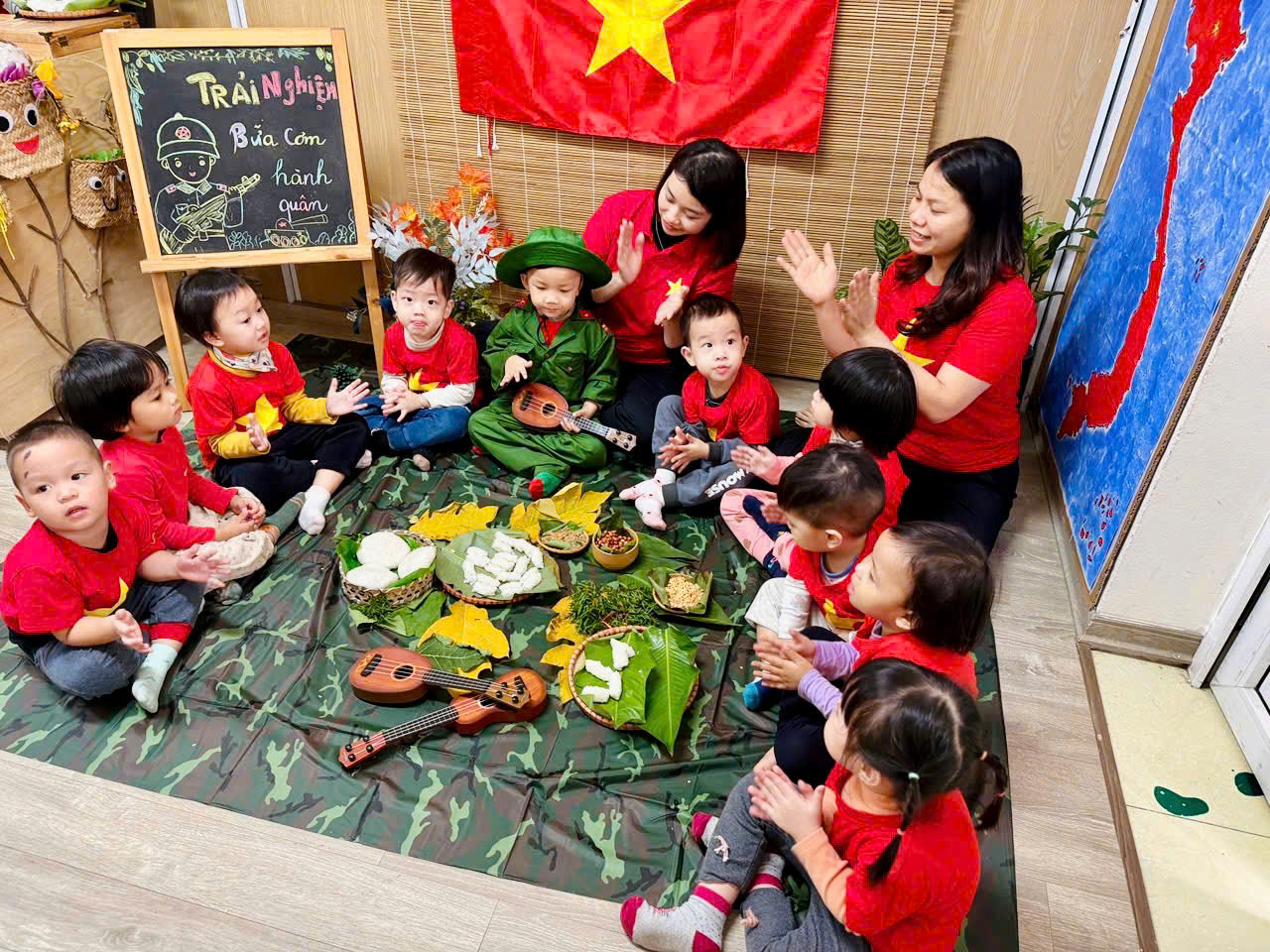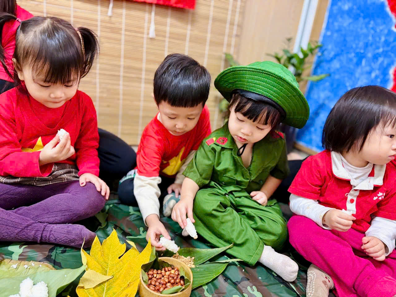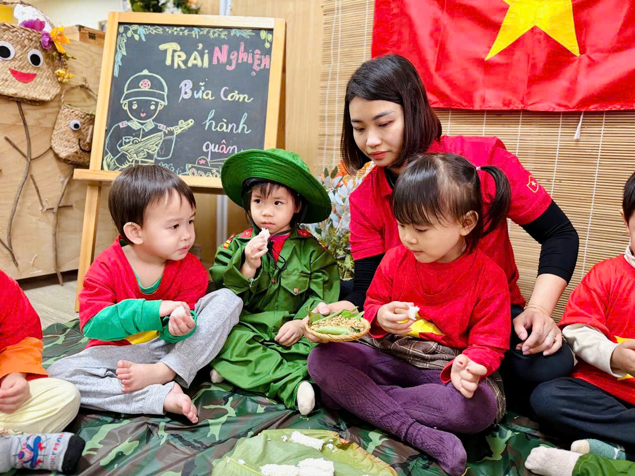 Hôm nay, các bé lớp MGB C2 đã có buổi giao lưu ý nghĩa cùng các em nhà trẻ D1 qua hoạt động trải nghiệm “Bữa cơm hành quân”.