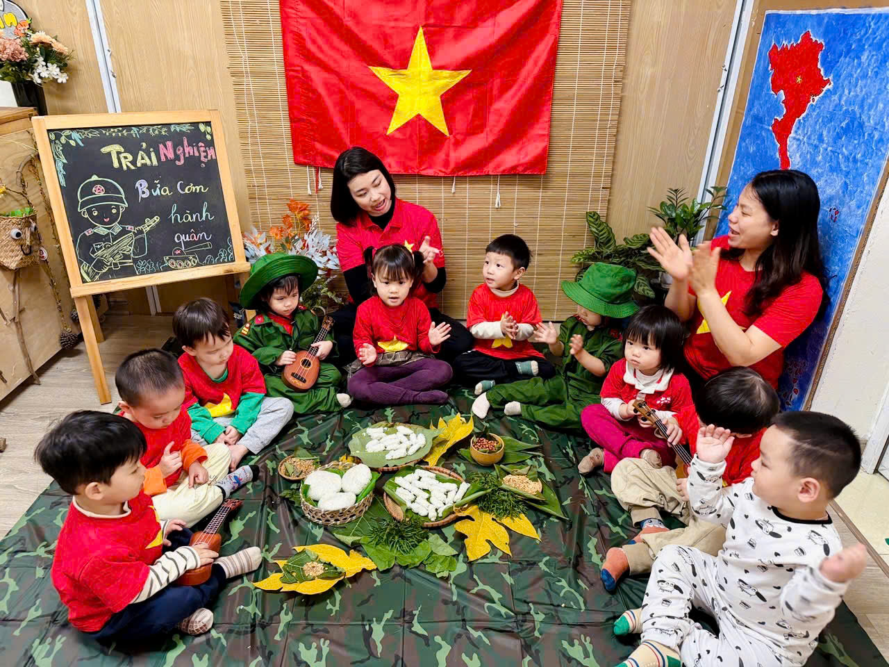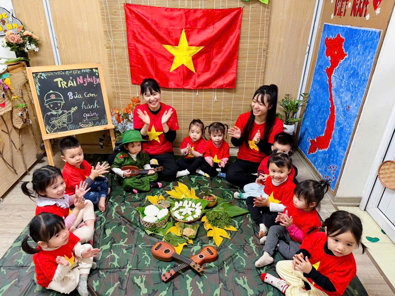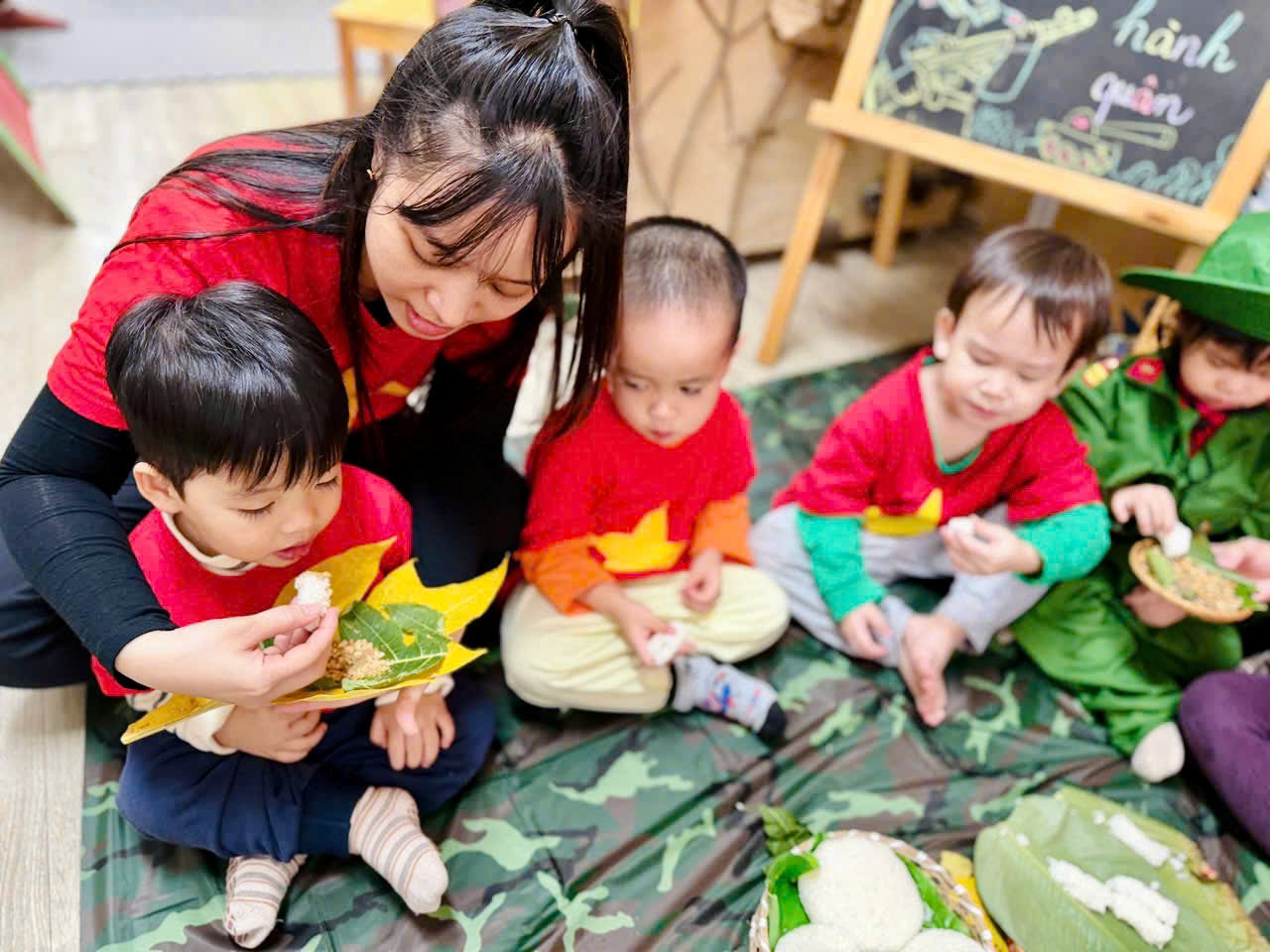 Hôm nay, các bé lớp MGB C2 đã có buổi giao lưu ý nghĩa cùng các em nhà trẻ D1 qua hoạt động trải nghiệm “Bữa cơm hành quân”.