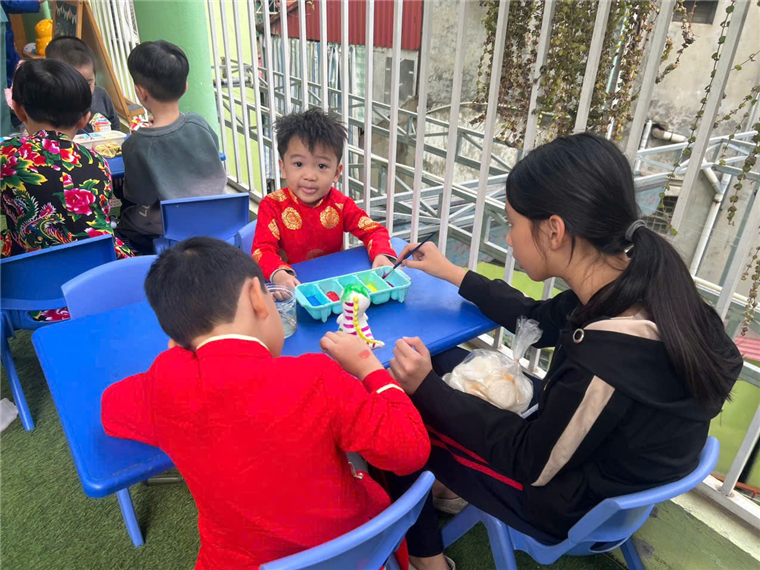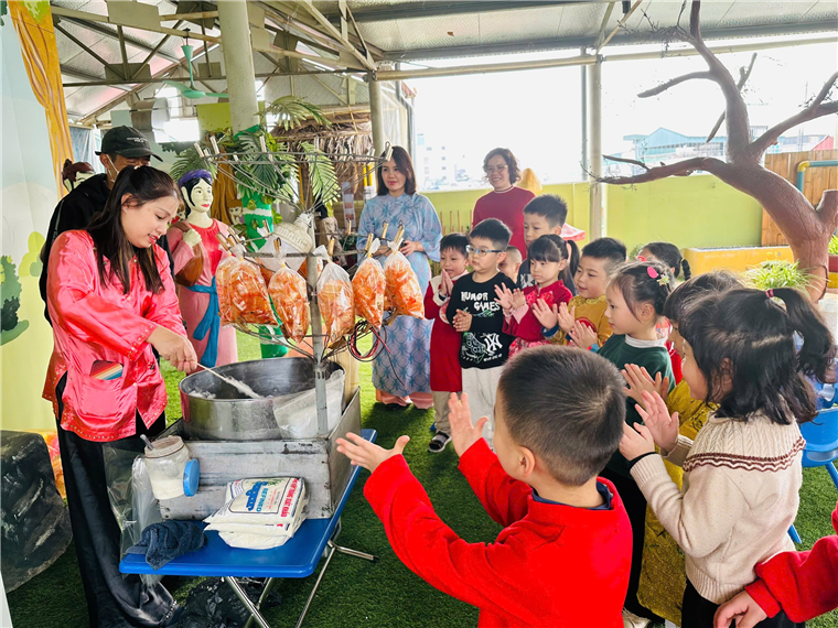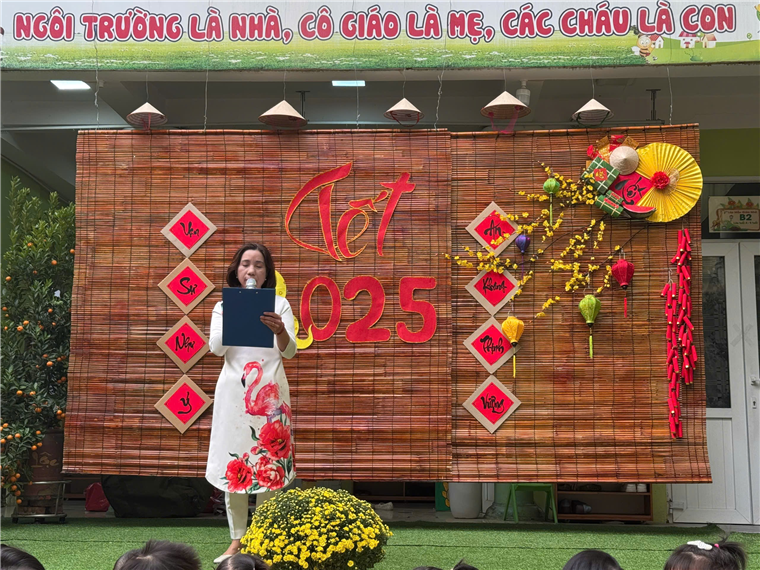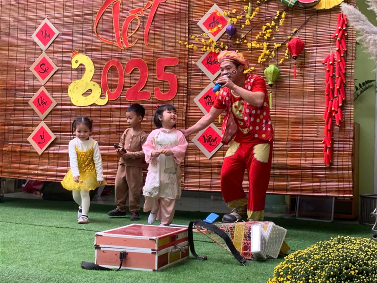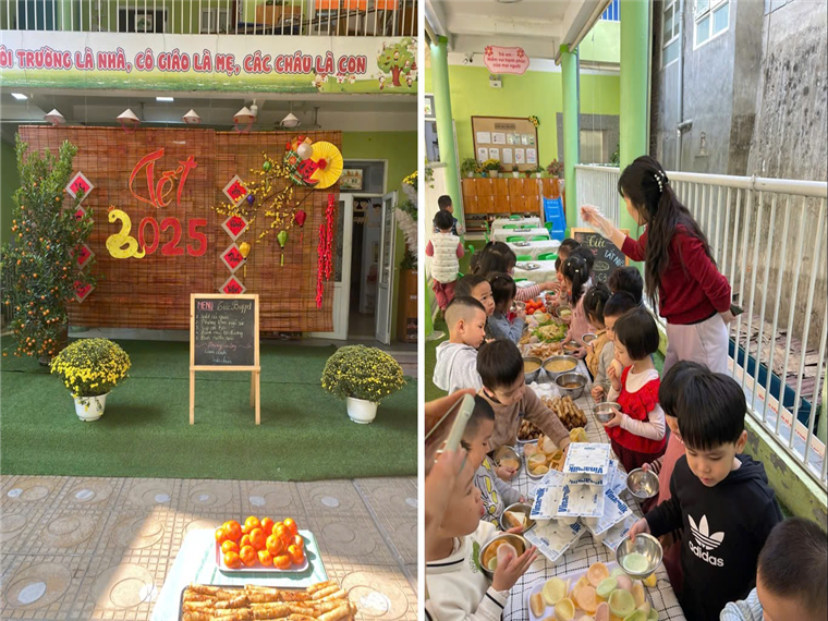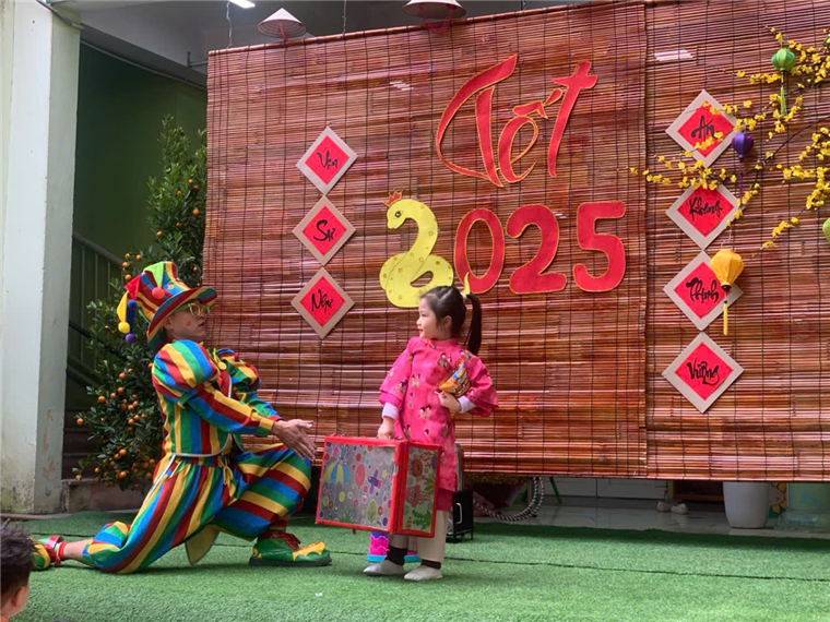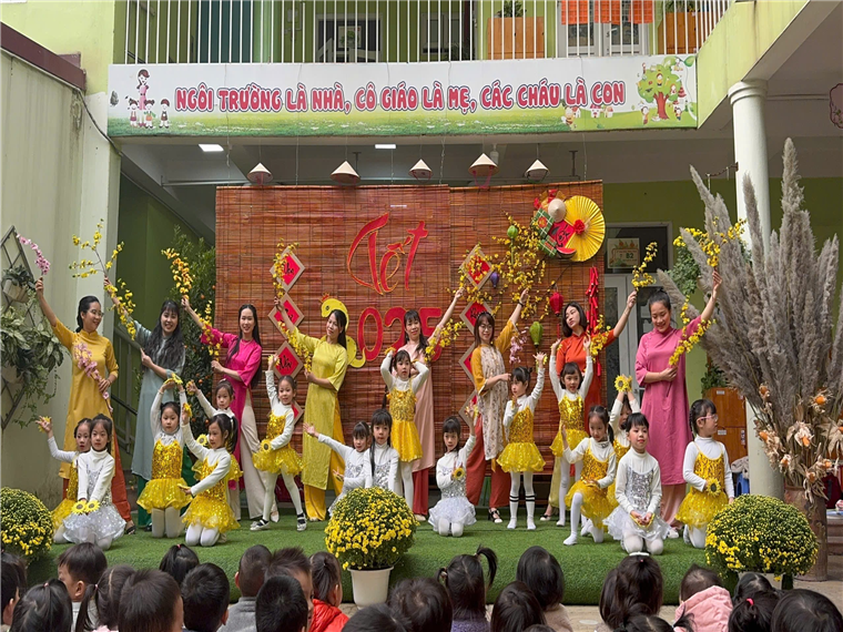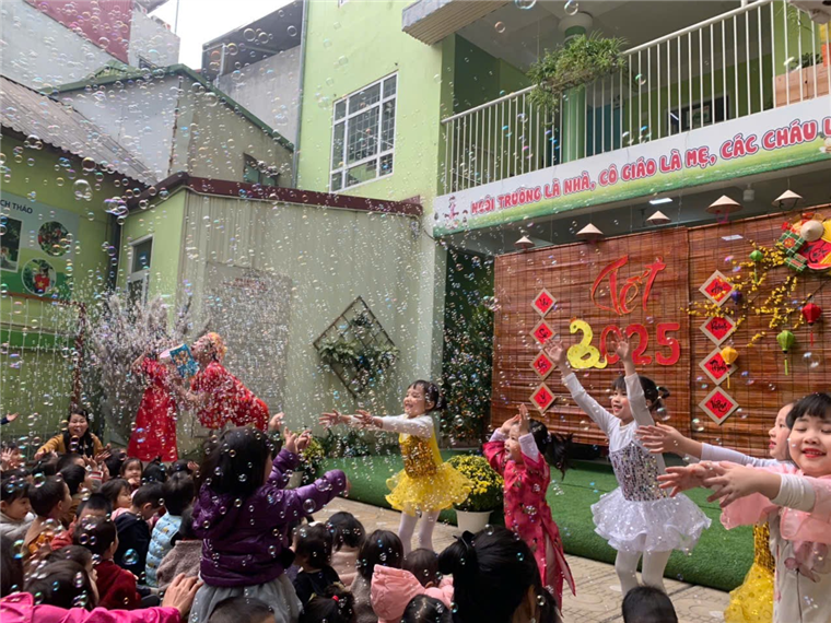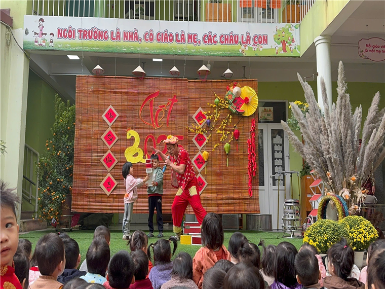 Không khí đón xuân bắt đầu ngay từ những ngày đầu của năm 2025. Trẻ được cùng cô giáo tham gia các hoạt động trang trí trường lớp đón tết, tham gia các trò chơi dân gian phù hợp với lứa tuổi, tham gia vào các hoạt động như: Biểu diễn văn nghệ, chương trình nghệ thuật xiếc, vui hội chợ xuân... Qua những hoạt động này, tạo không khí vui tươi mang lại nhiều cảm xúc cho trẻ.
