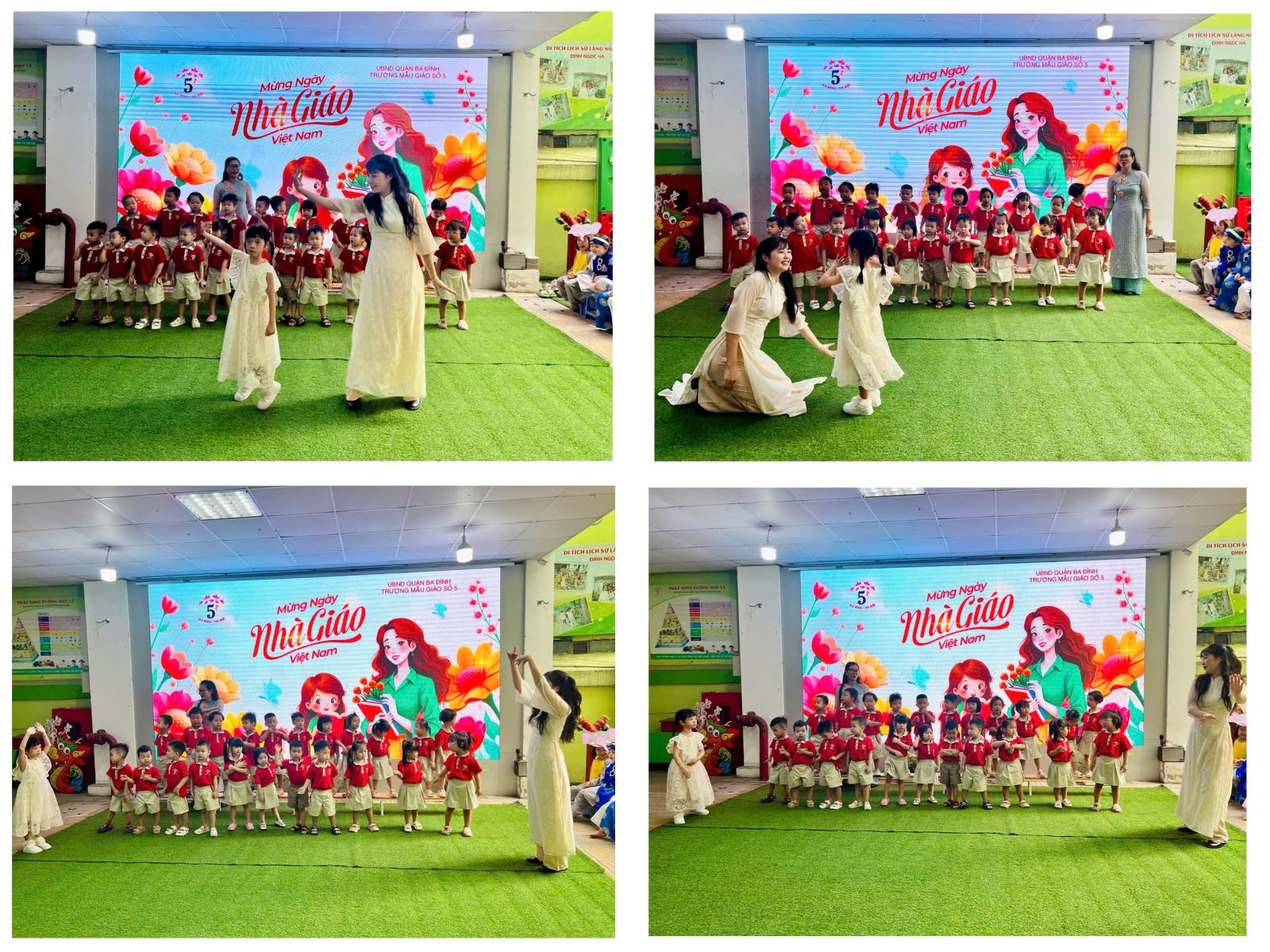 Tiếp theo chương trình là bài nhảy “bông hồng tặng cô” cho các con lớp Mẫu giáo lớn A4 biểu diễn và giọng hát trong trẻo của cô giáo qua bài hát “Cô ơi”.