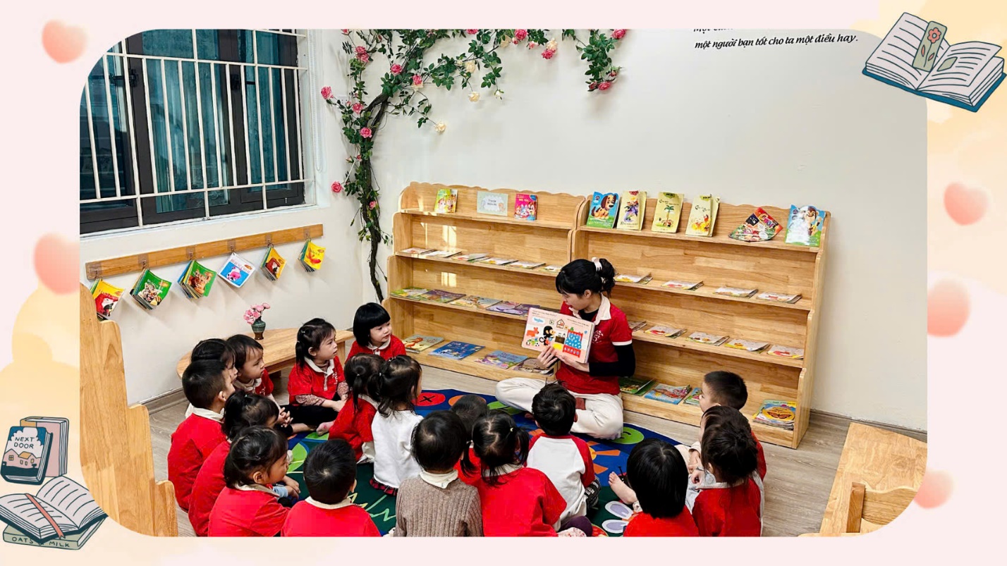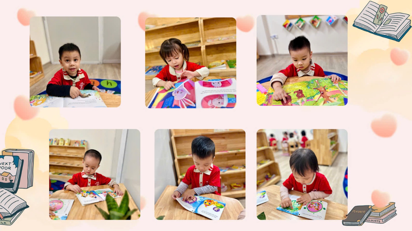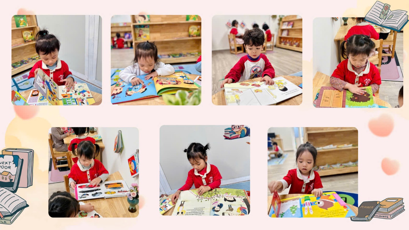 Hoạt động tại thư viện không chỉ giúp các con hình thành thói quen yêu thích đọc sách từ sớm mà còn góp phần phát triển ngôn ngữ, khả năng lắng nghe, sự tập trung và nuôi dưỡng trí tưởng tượng phong phú. Đây cũng là cơ hội để các bé rèn kỹ năng giữ trật tự nơi công cộng và tinh thần tự giác trong học tập.