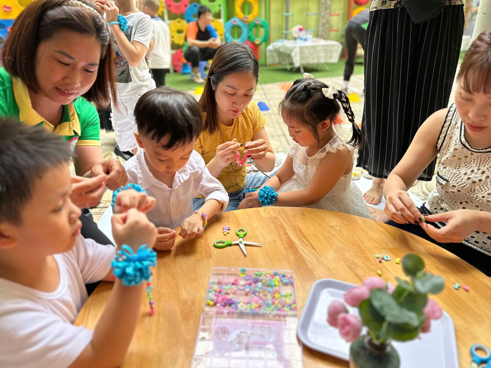 Các cô giáo trường Mầm non Ba Trại A hòa mình vào các hoạt động cùng giáo viên Mẫu giáo Số 5, học sinh và phụ huynh học sinh.