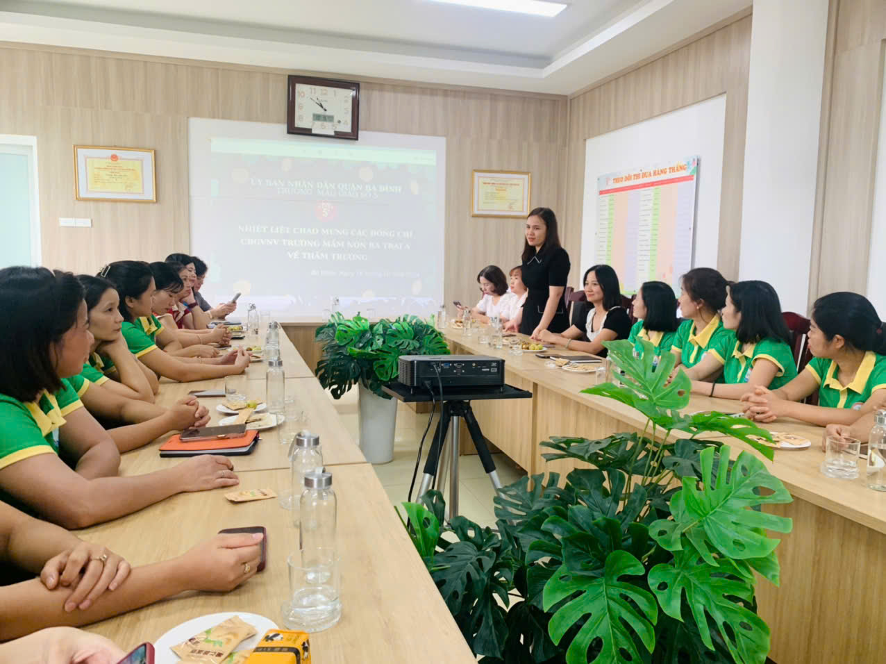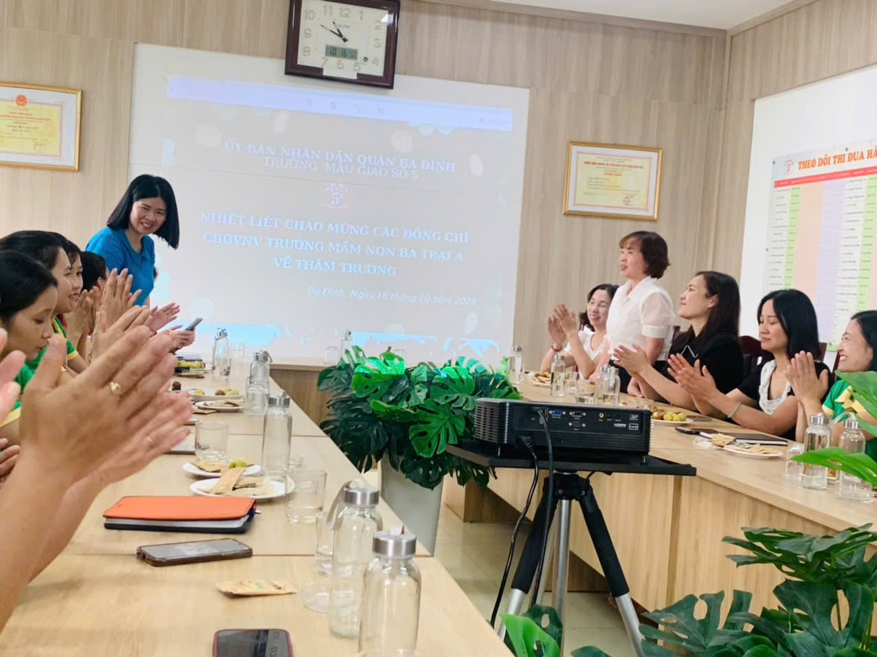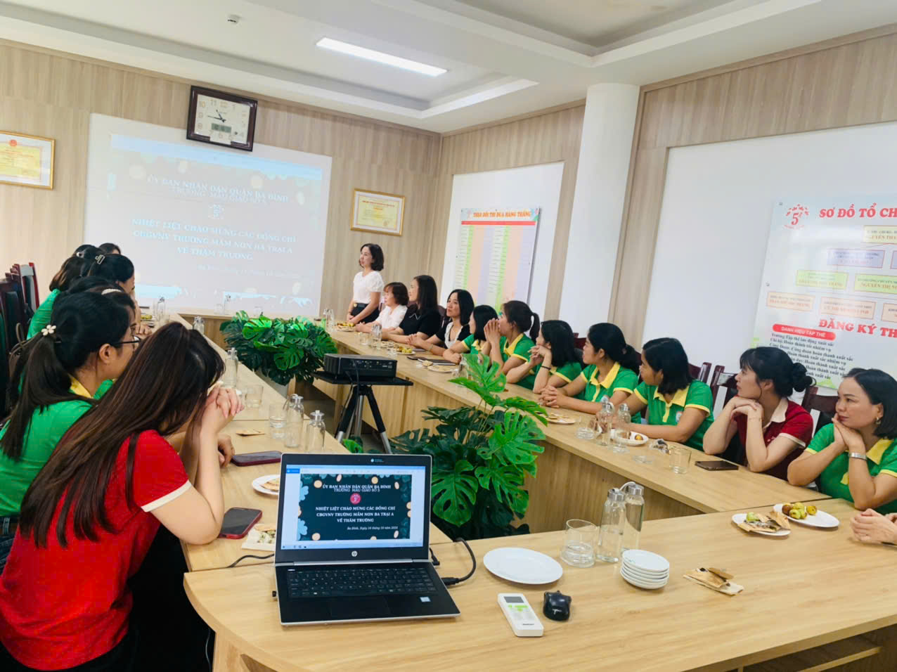 Sau khi kết thúc các hoạt động giao lưu tại Ngày hội Yêu thương, ban giám hiệu cùng giao viên hai nhà trường đã có buổi trao đổi chuyên môn đầy ý nghĩa tại phòng họp chuyên môn. Trong buổi họp, hai nhà trường đã cùng nhau thảo luận và chia sẻ những kinh nghiệm, phương pháp giảng dạy hiệu quả, cũng như cập nhật những phương pháp giáo dục mới. Buổi trao đổi không chỉ giúp các giáo viên củng cố kiến thức, mà còn thúc đẩy sự hợp tác và gắn kết giữa hai ngôi trường, hứa hẹn nhiều cơ hội phát triển và nâng cao chất lượng giáo dục mầm non trong tương lai.