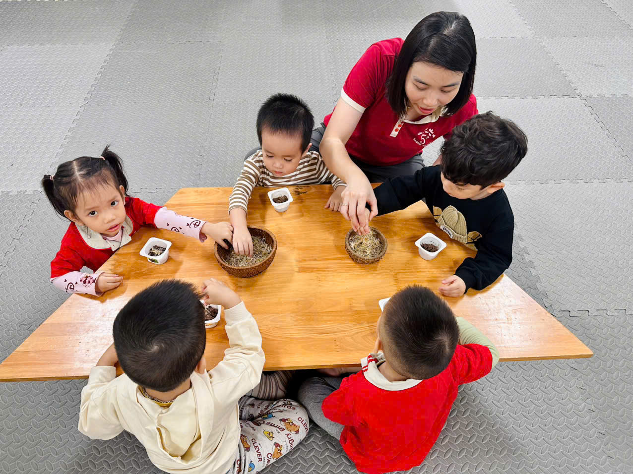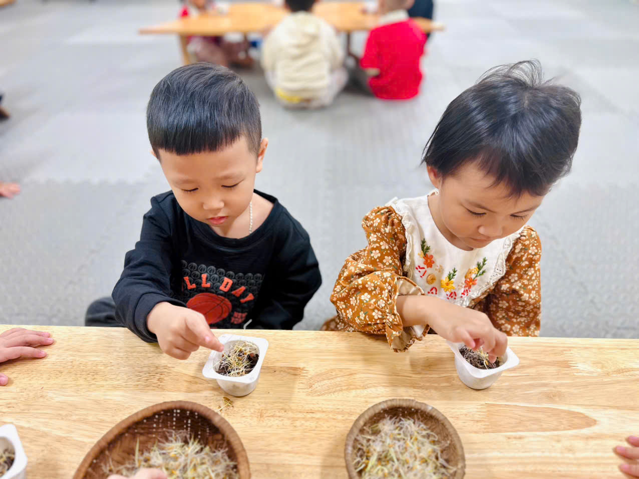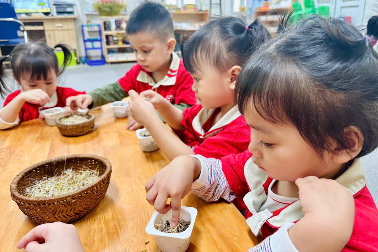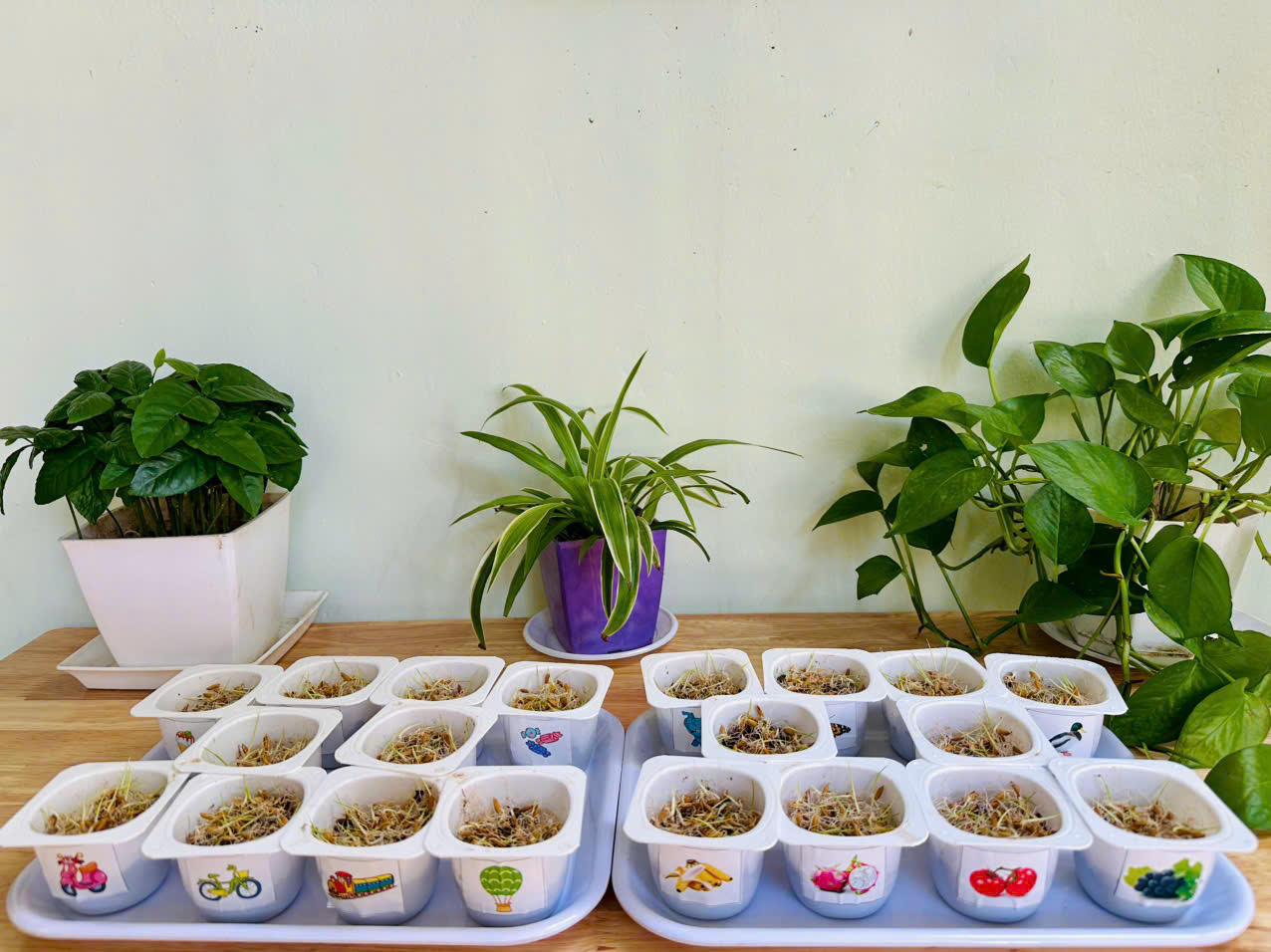 Những hạt mầm nhỏ hôm nay sẽ sớm nảy xanh — và đó cũng là niềm vui lớn của các con khi được theo dõi thành quả mỗi ngày.