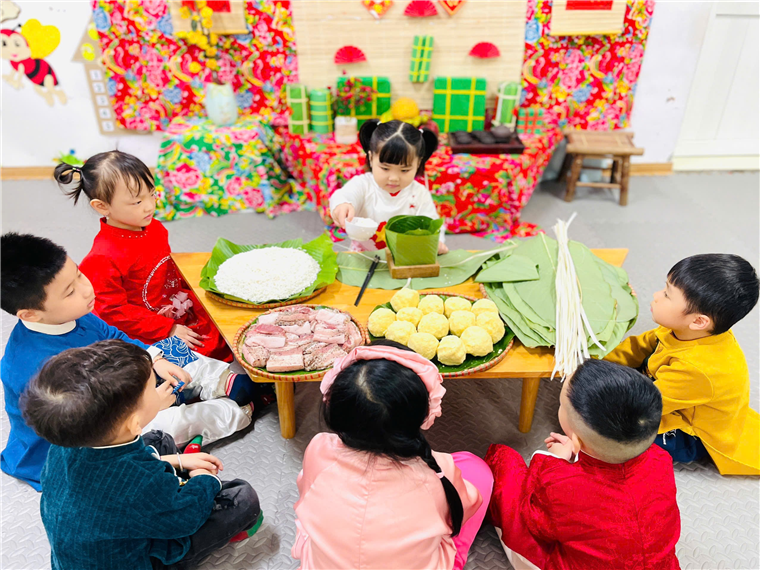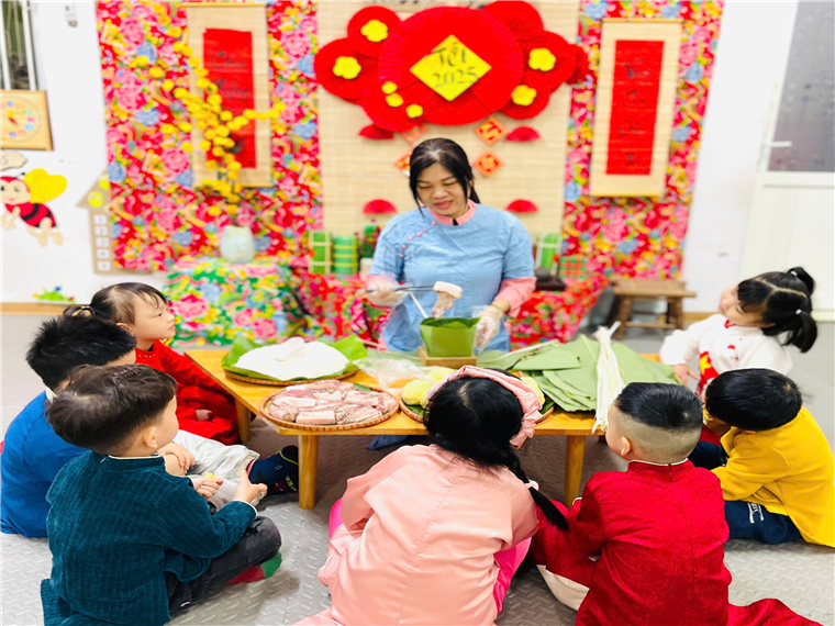 Để giúp cho các bé tìm hiểu về phong tục, giáo dục nét đẹp văn hoá truyền thống của dân tộc Việt Nam, trẻ hiểu sâu sắc về ý nghĩa bánh chưng ngày tết, Các cô giáo lớp B2 đã tổ chức hoạt động gói bánh chưng cho trẻ trải nghiệm. Qua hoạt động trẻ biết những nguyên liệu làm bánh, biết cách gói bánh chưng. Đặc biệt, đây là hoạt động vô cùng bổ ích và ý nghĩa vì không chỉ cung cấp những kiến thức về môi trường xung quanh, những kỹ năng ứng dụng trong cuộc sống mà còn giáo dục trẻ biết nguồn gốc, biết giữ gìn và phát huy những phong tục tập quán, nét đẹp truyền thống của dân tộc.