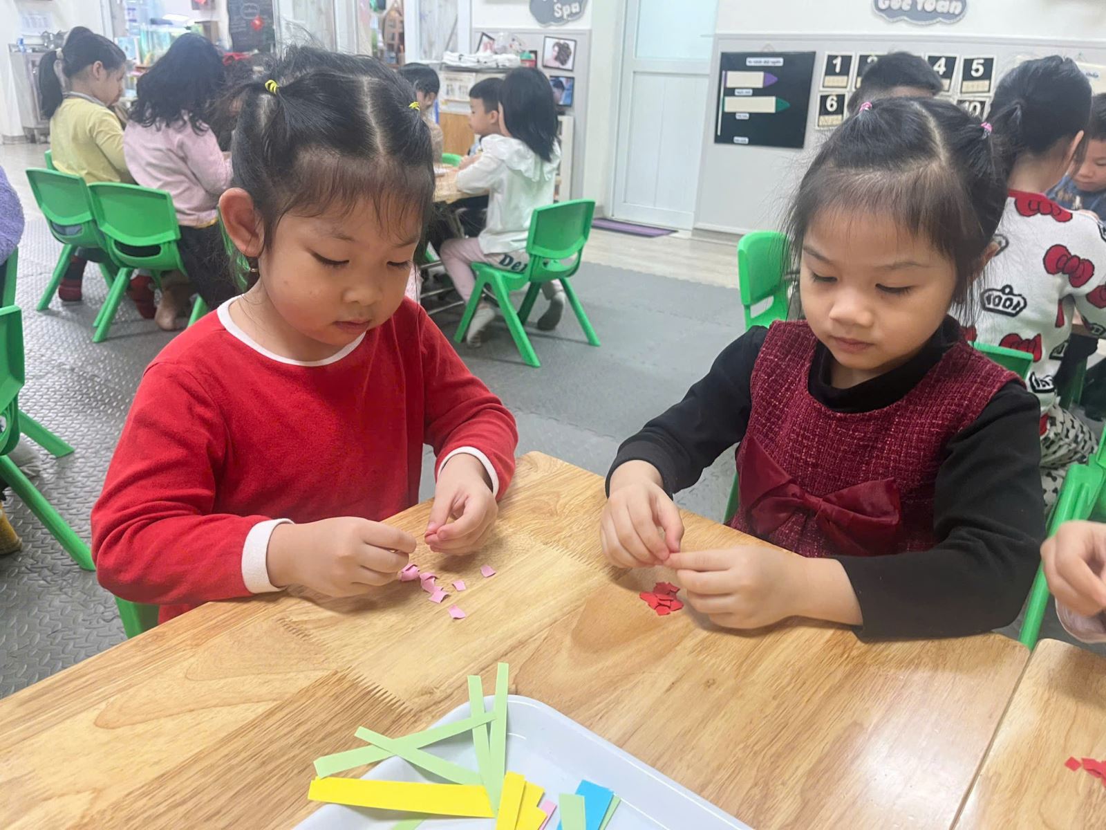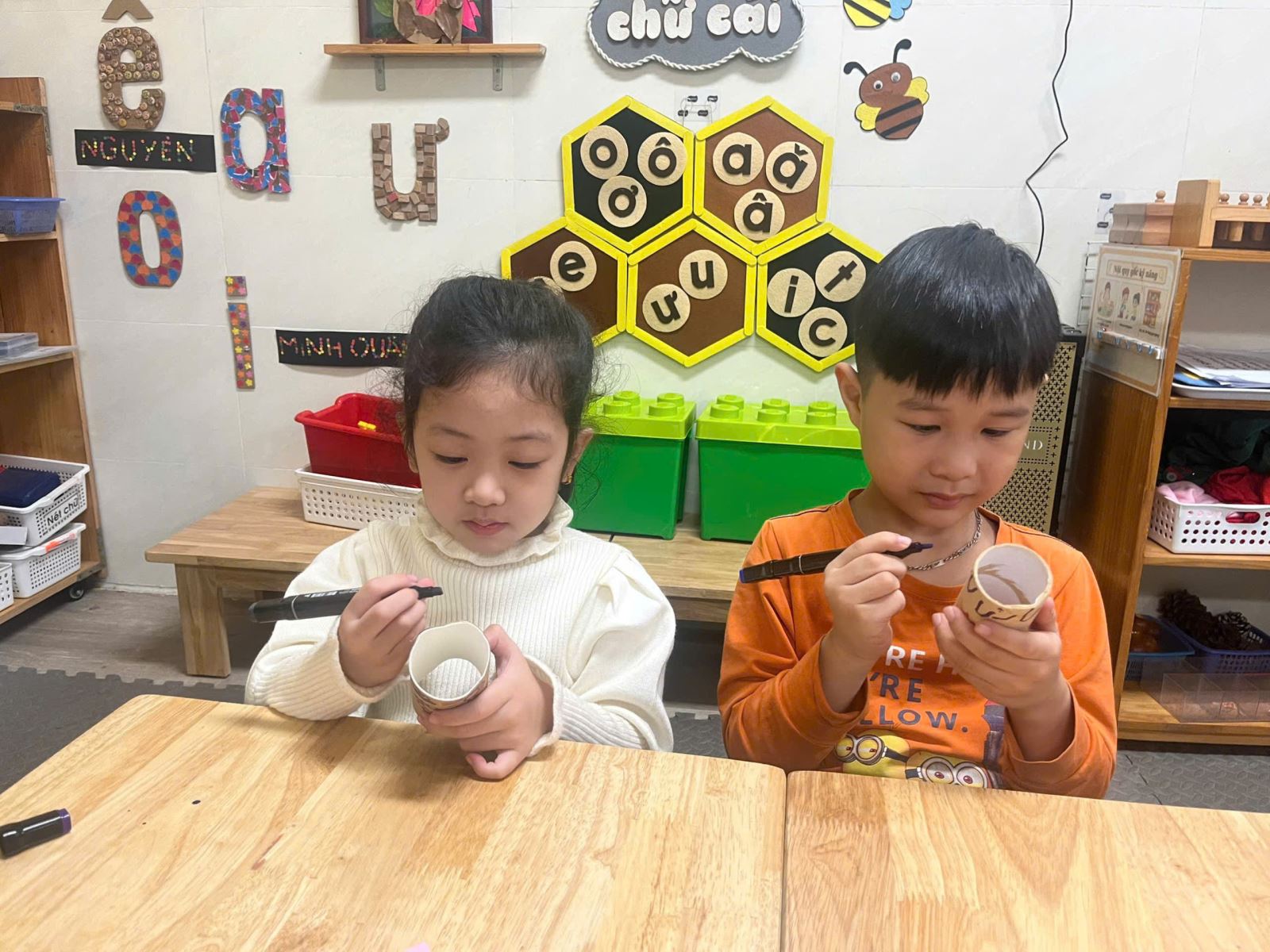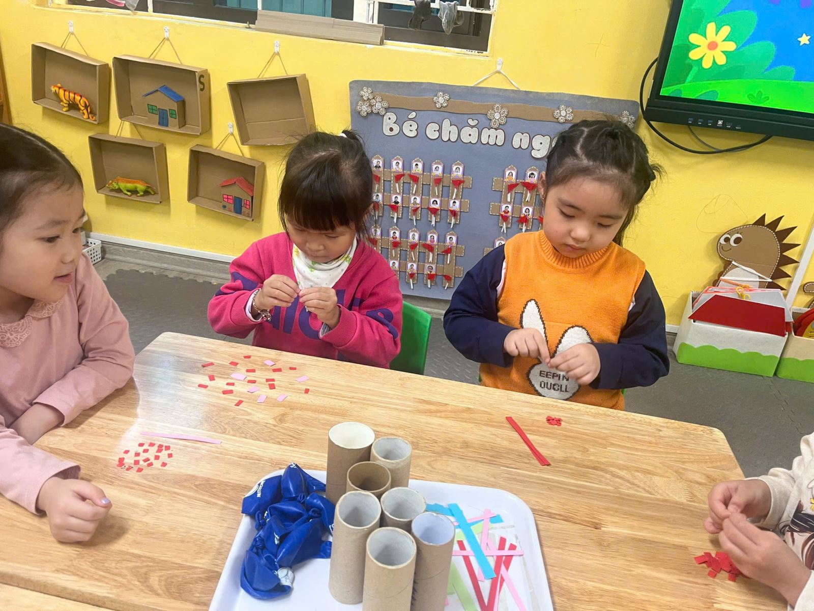 Hoạt động không chỉ giúp các con rèn luyện sự khéo léo của đôi tay, phát triển óc sáng tạo mà còn mang lại không khí học tập vui tươi, hào hứng. Những nguyên vật liệu tái chế tưởng chừng đơn giản đã trở thành đồ chơi độc đáo dưới bàn tay tài năng của các bạn nhỏ A2.