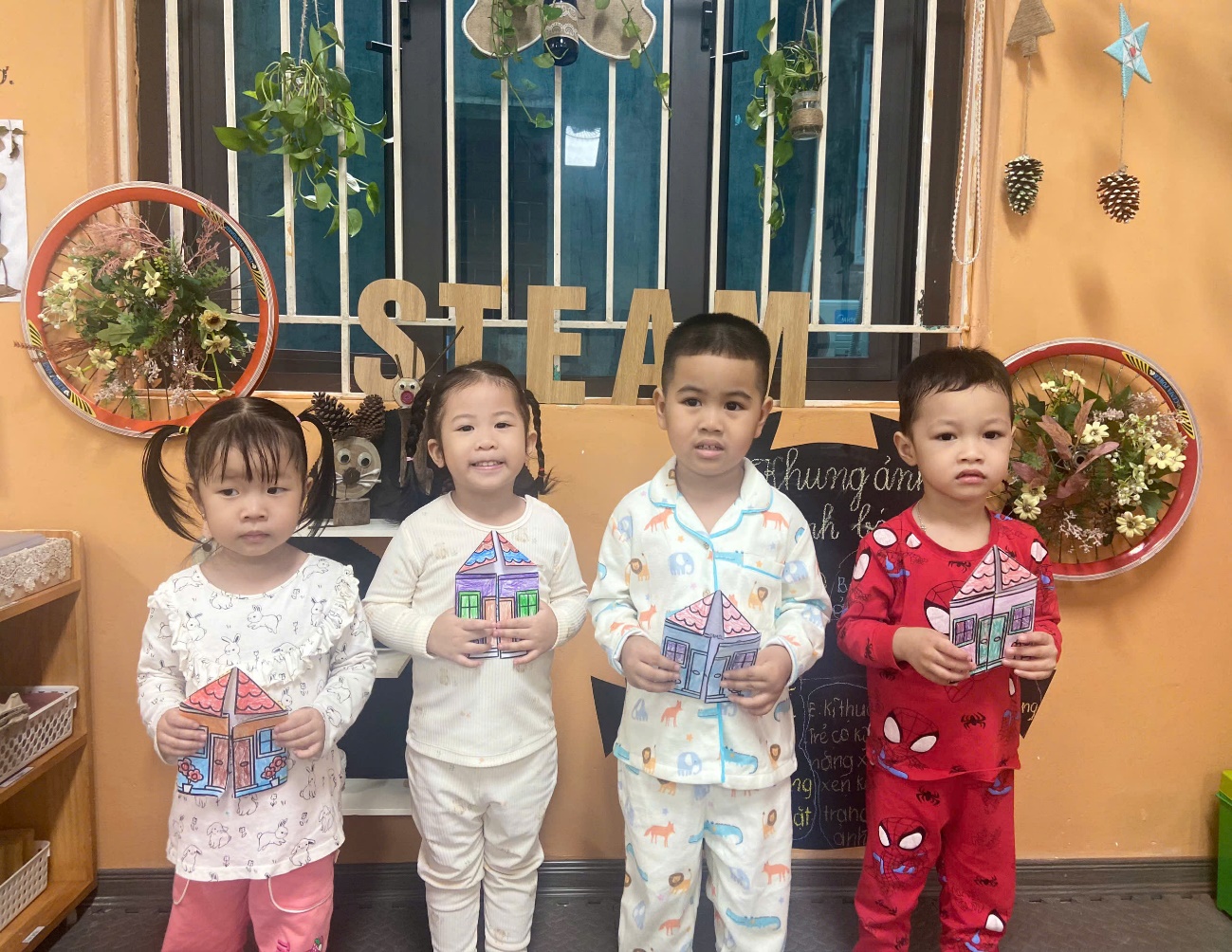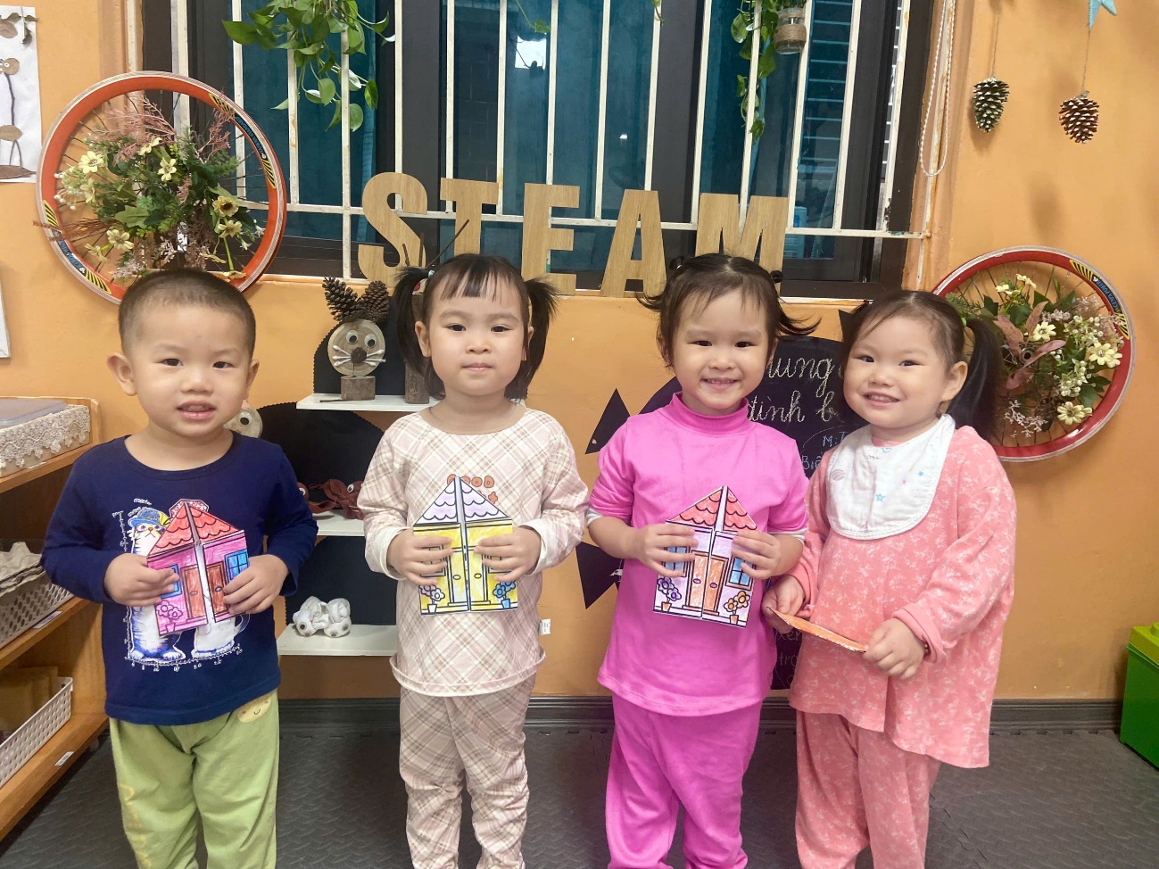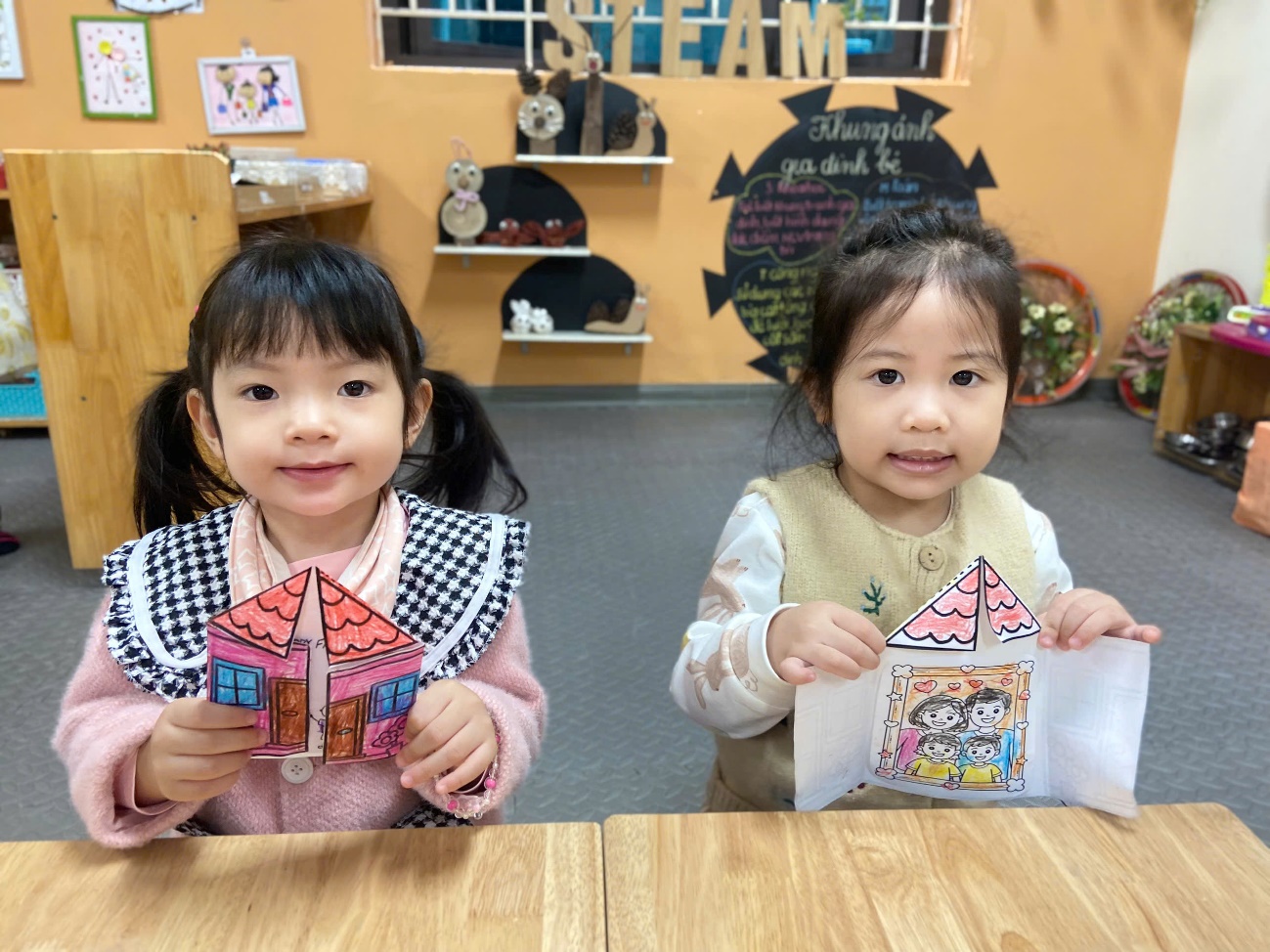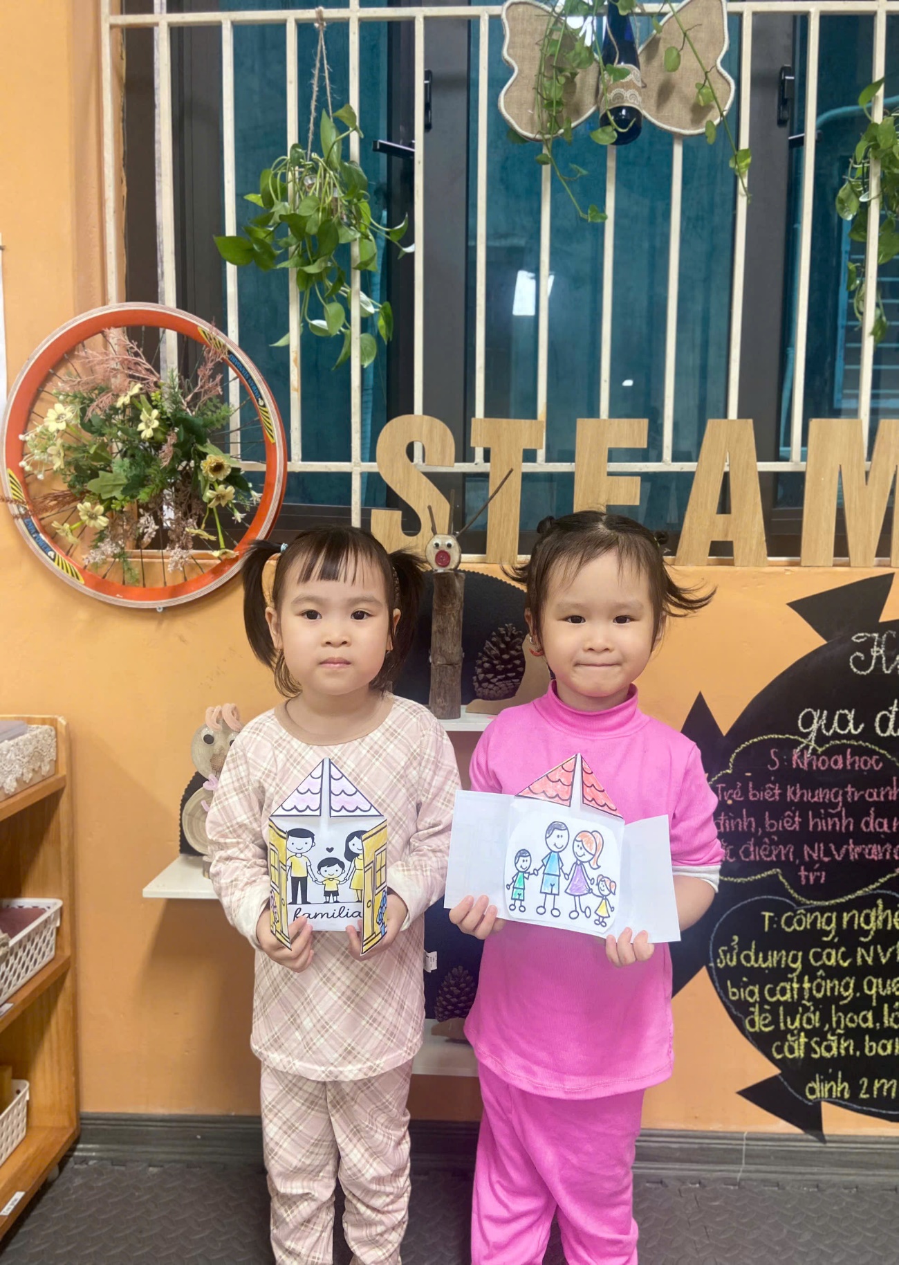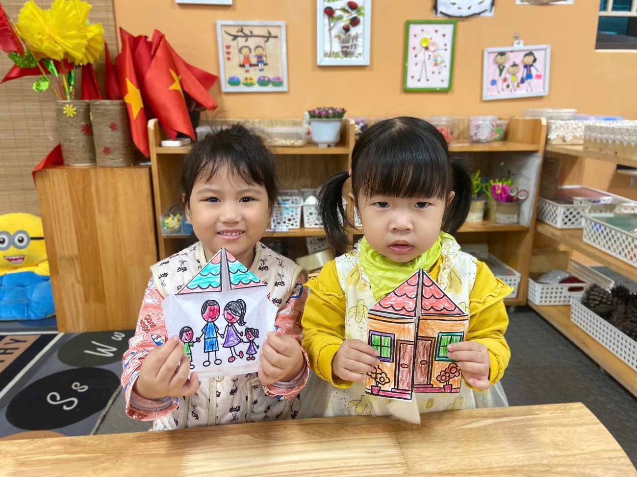 Hoạt động không chỉ giúp trẻ phát triển kỹ năng tạo hình mà còn nuôi dưỡng tình cảm gia đình – điều vô cùng quan trọng trong những năm đầu đời. Bố mẹ hãy cùng ngắm nhìn những hình ảnh đáng yêu của các con nhé!