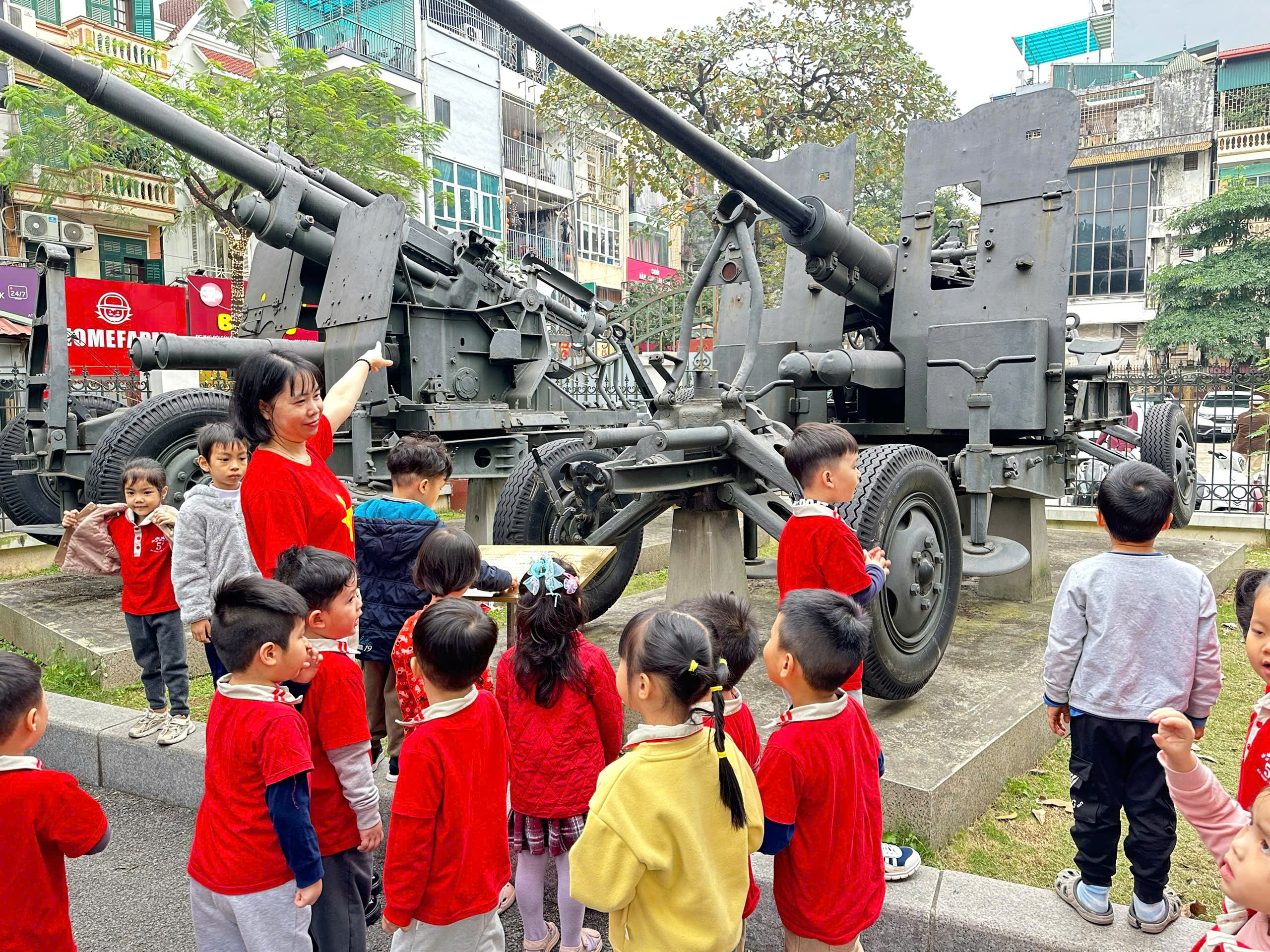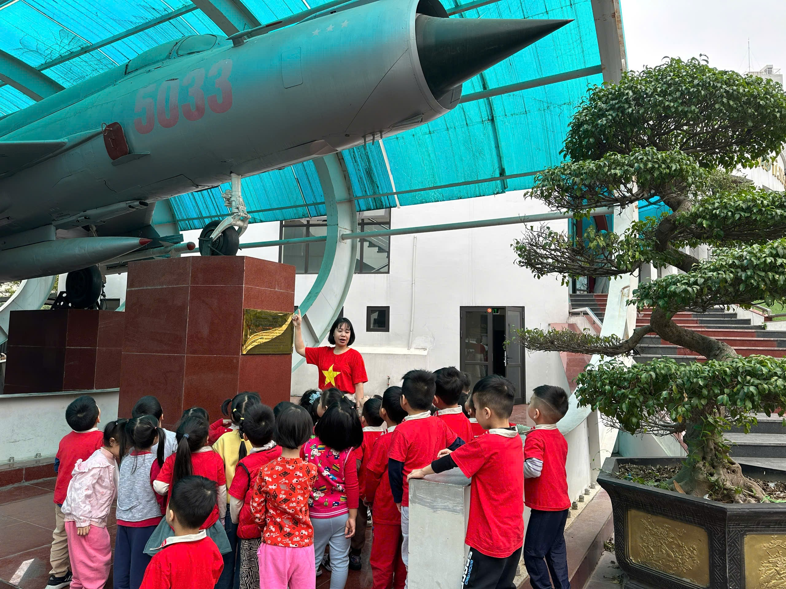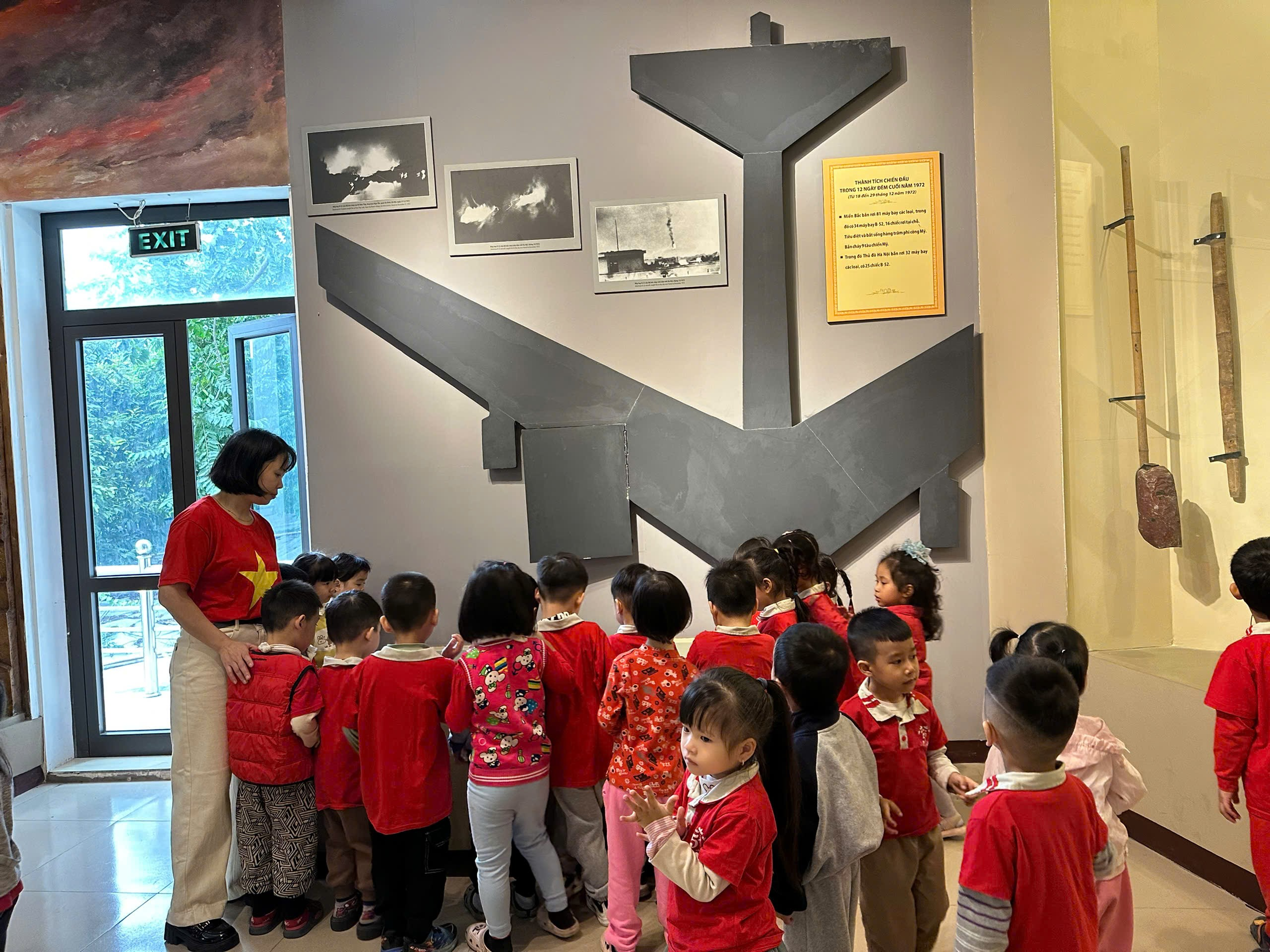 Đến đây, các bé được tận mắt quan sát những hiện vật lịch sử như máy bay, bom, súng, những vật dụng, vũ khí chiến đấu … những minh chứng sống động cho một thời chiến tranh ác liệt nhưng đầy khí phách. Qua đó, hun đúc cho trẻ lòng yêu nước, tinh thần sẵn sàng chiến đấu kiên cường để bảo vệ Tổ quốc.