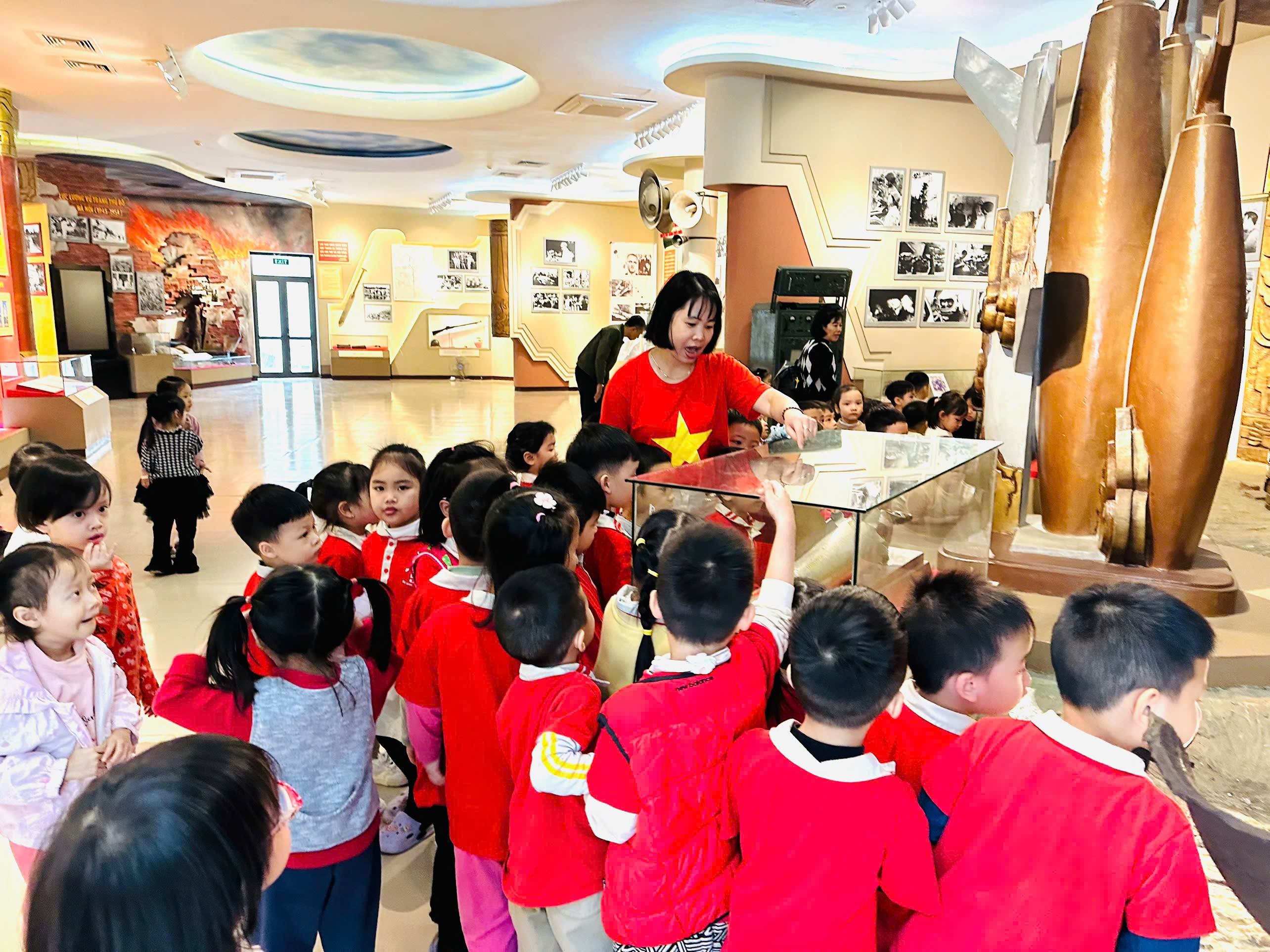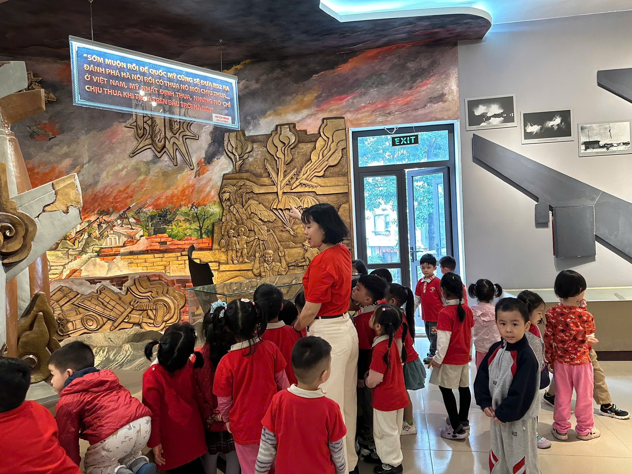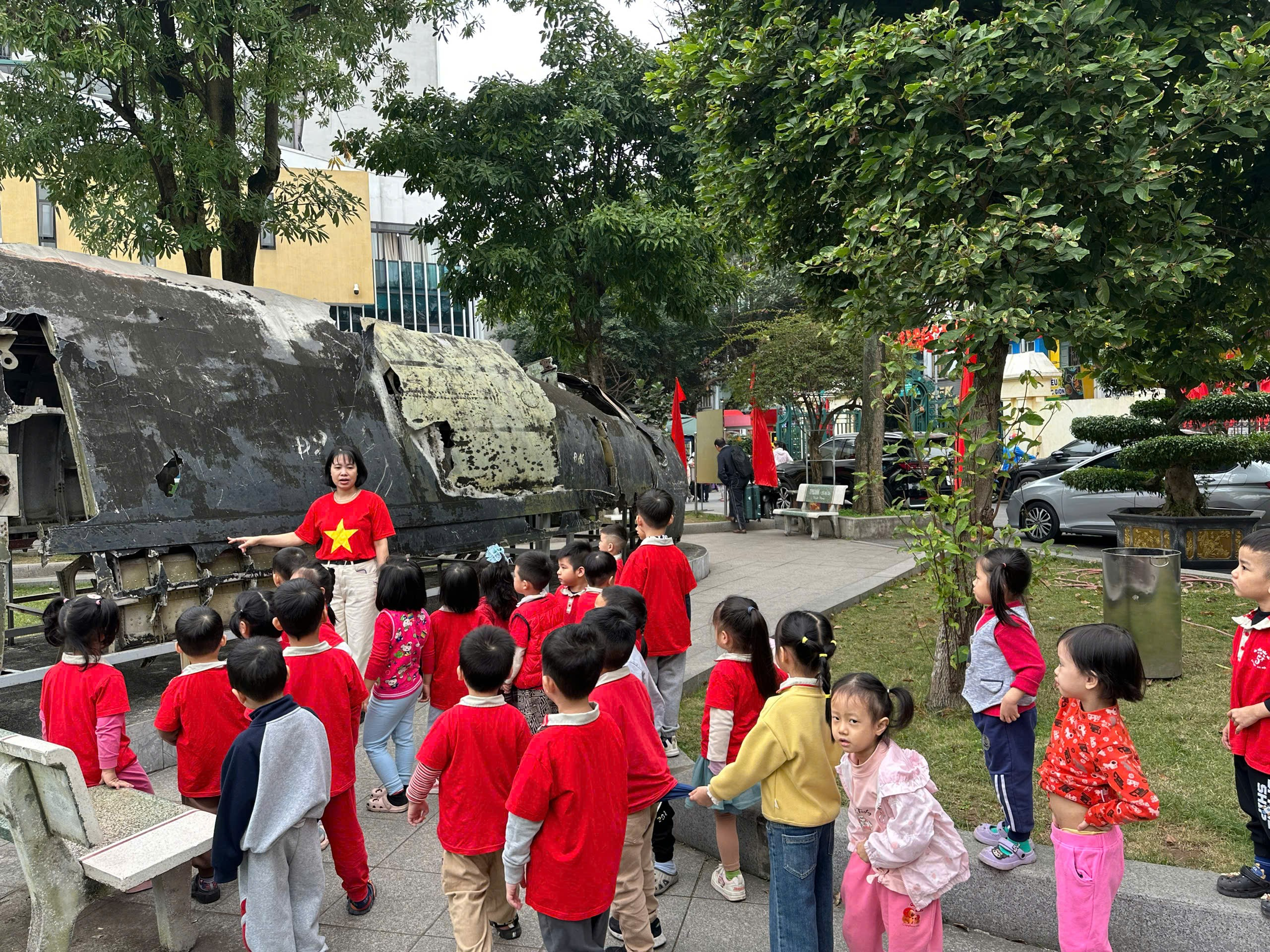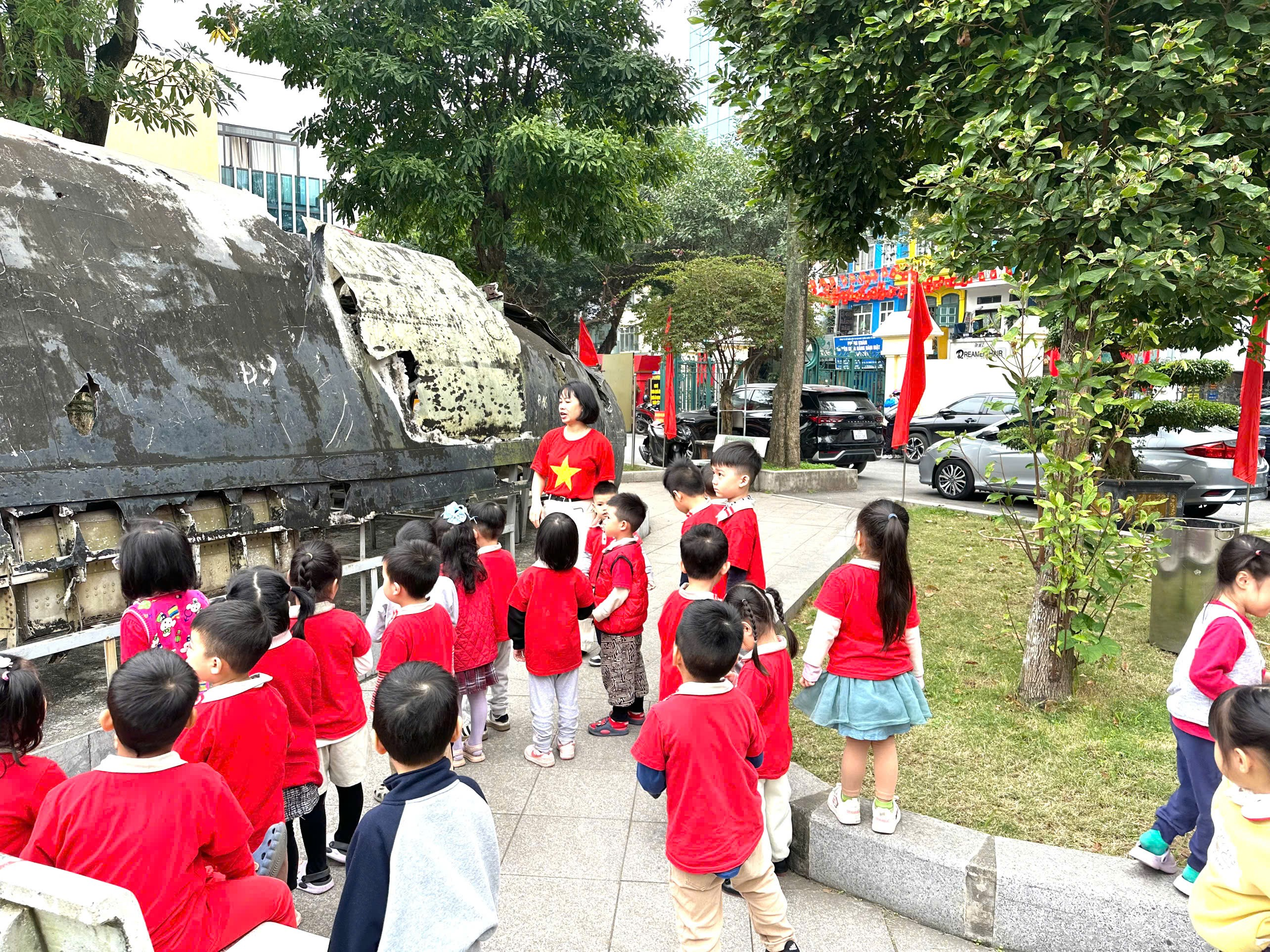 Đến đây, các bé được tận mắt quan sát những hiện vật lịch sử như máy bay, bom, súng, những vật dụng, vũ khí chiến đấu … những minh chứng sống động cho một thời chiến tranh ác liệt nhưng đầy khí phách. Qua đó, hun đúc cho trẻ lòng yêu nước, tinh thần sẵn sàng chiến đấu kiên cường để bảo vệ Tổ quốc.