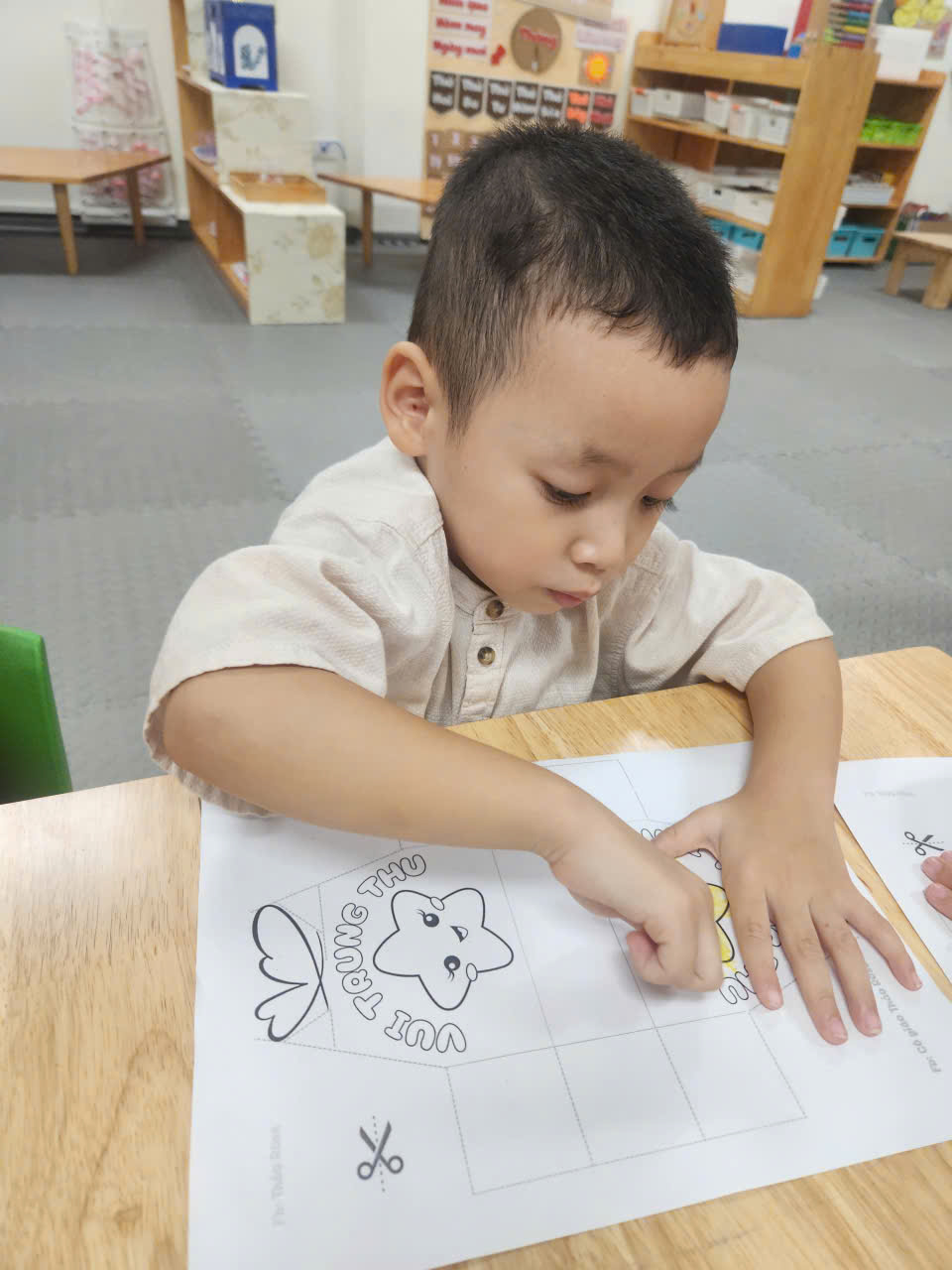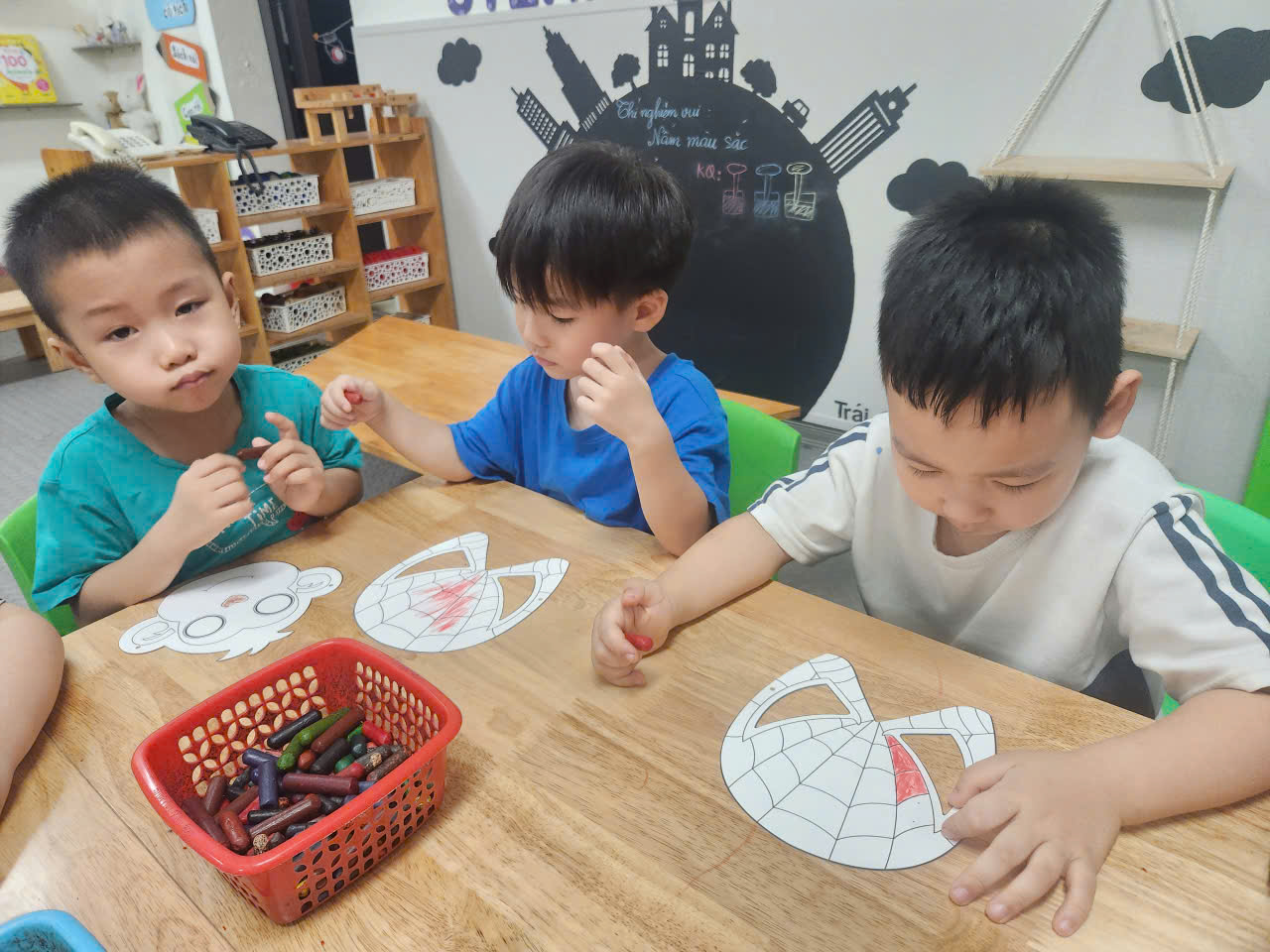 Với đôi bàn tay khéo léo và trí tưởng tượng phong phú, các bé đã tự tay tô màu và trang trí những chiếc mặt nạ ngộ nghĩnh, mang đậm dấu ấn cá nhân. Có bạn hóa thân thành chú thỏ tinh nghịch, bạn lại biến thành siêu nhân dũng cảm, mỗi chiếc mặt nạ đều chứa đựng một câu chuyện riêng.