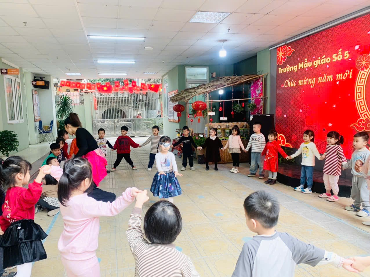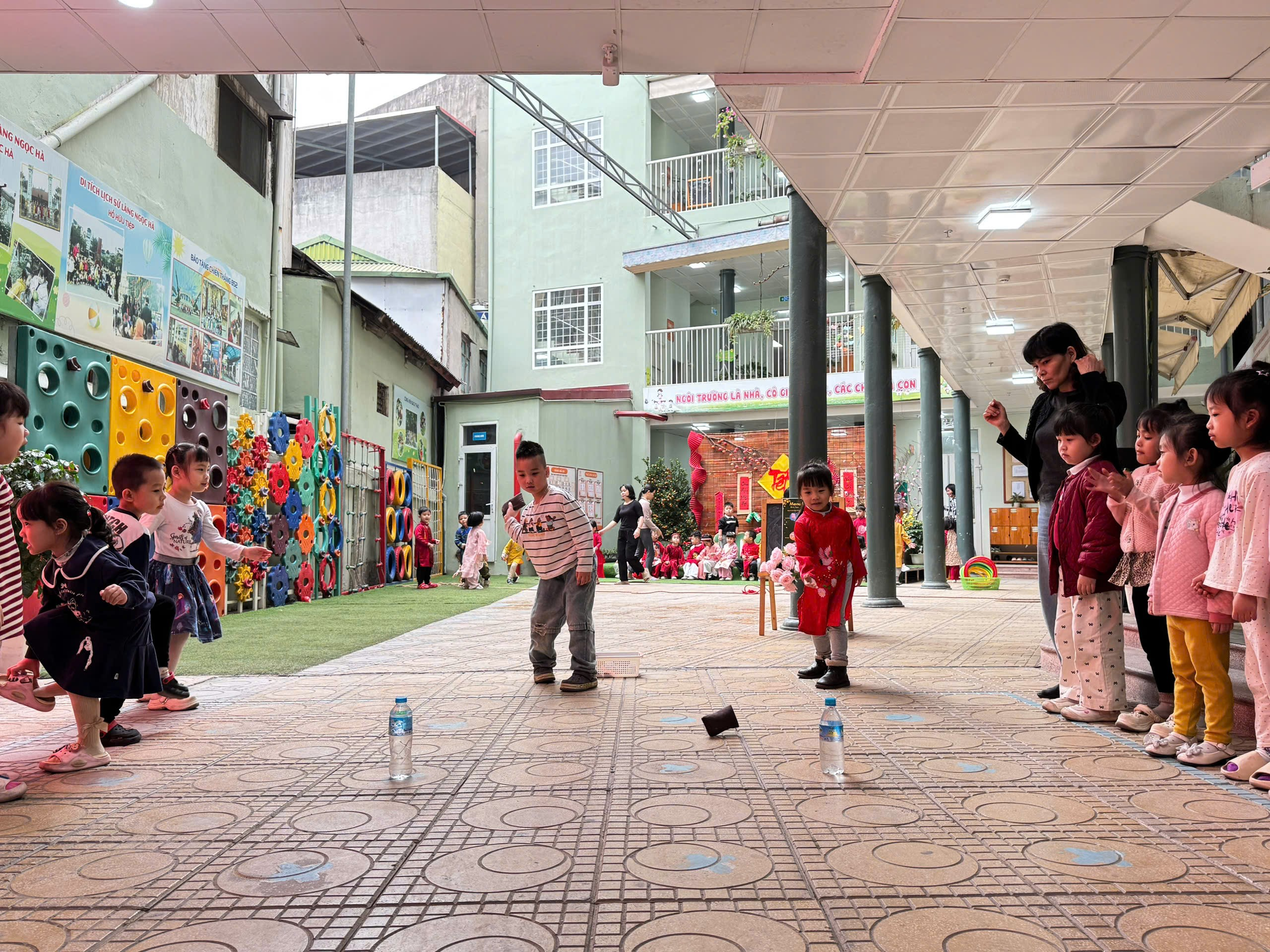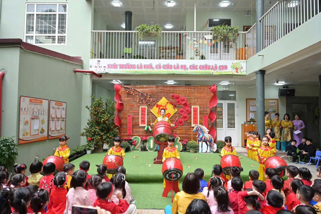 Giữa lòng phố thị nhộn nhịp, có một "làng quê thu nhỏ" đang dần hiện hữu ngay tại sân trường Mẫu giáo Số 5 Ngọc Hà. Với mong muốn đưa các con trở về với những giá trị truyền thống, tìm hiểu về nguồn cội, nhà trường tổ chức Hội chợ Xuân Bính Ngọ 2026. Đây không chỉ là một sự kiện, mà là một hành trình trải nghiệm đa giác quan, nơi các bé được "tai nghe, mắt thấy, tay chạm" vào hồn cốt của Tết xưa.