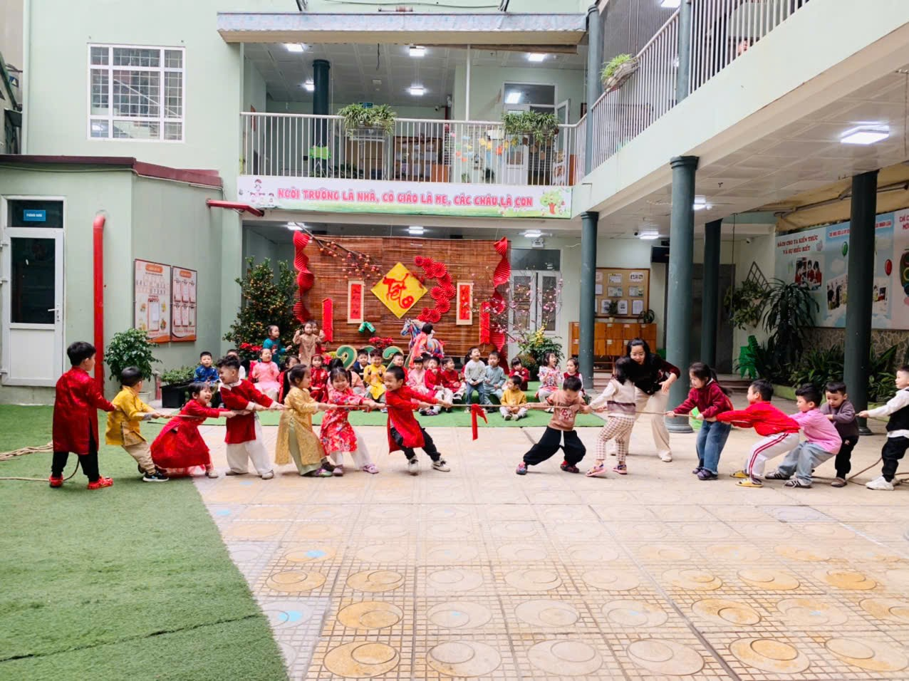 Hội chợ Xuân tại trường Mẫu giáo Số 5 không chỉ để bán một món hàng, mà để tặng cho các con một ký ức. Để mai này lớn lên, trong hành trang của các con luôn có mùi thơm của lá dong, sắc đỏ của câu đối và hơi ấm của sự sum vầy."