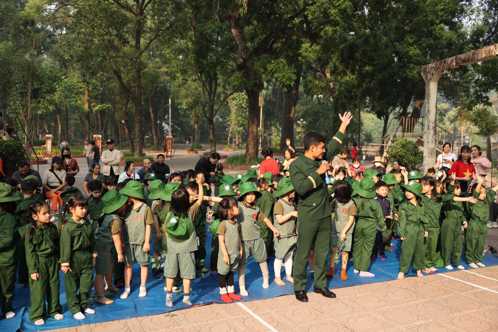 Các chiến sĩ nhí trong trang phục bộ đội màu xanh quen thuộc đã tham gia vào một hành trình rèn luyện đầy thử thách và niềm vui, nhằm rèn luyện tính đoàn kết, sự nhanh nhẹn và lòng dũng cảm.