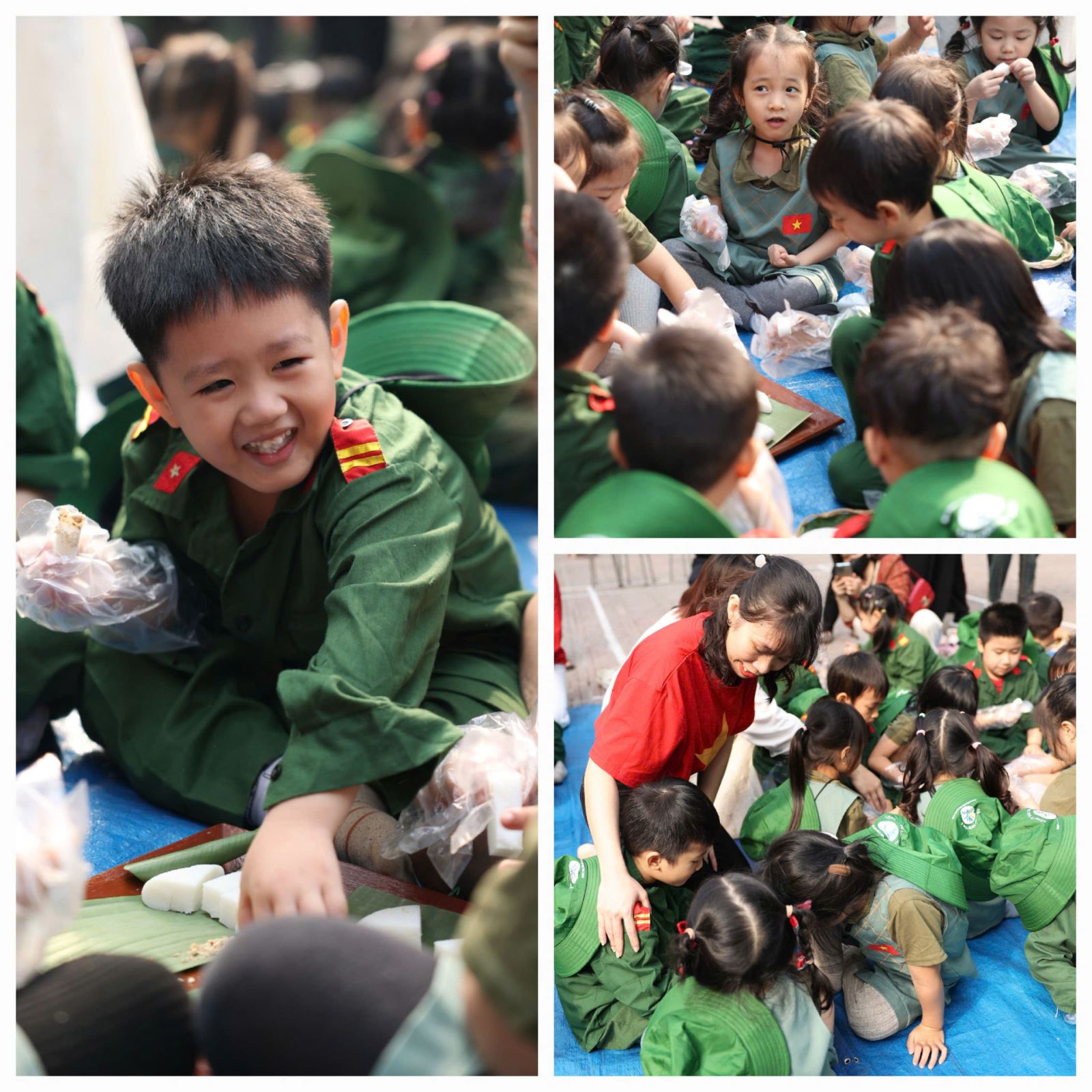 Khoảnh khắc lắng đọng nhất là khi các chiến sĩ tí hon được trải nghiệm "Bữa cơm hành quân" sau giờ luyện tập vất vả. Giáo viên đã chia sẻ về sự hy sinh và bữa ăn giản dị của các chú bộ đội thời chiến , giúp các con hiểu và biết trân trọng từng hạt cơm, biết ơn những người đã bảo vệ Tổ quốc. Đây là bài học giáo dục truyền thống và lòng biết ơn vô cùng ý nghĩa.