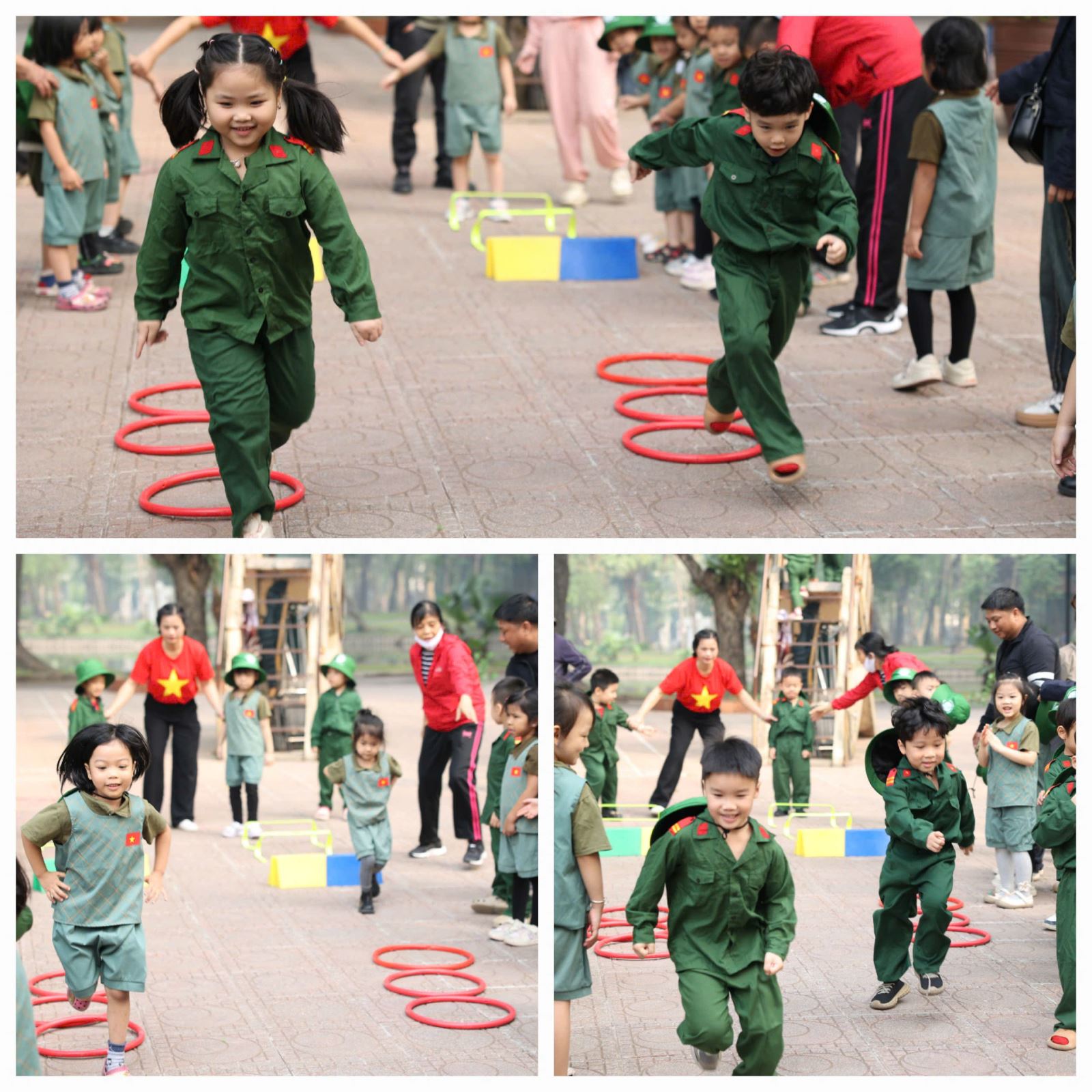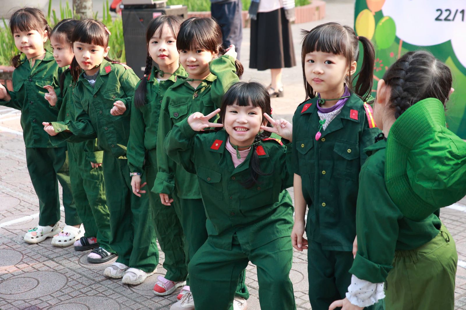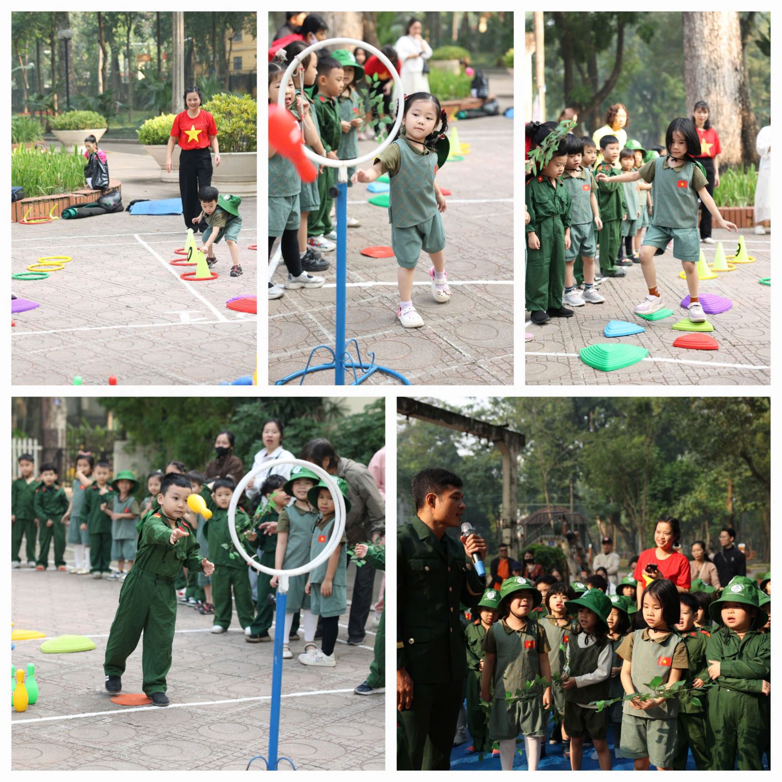Mở đầu chương trình, sau phần lễ trang trọng với sự tham dự của Ban Giám hiệu, giáo viên và phụ huynh , các bé đã cùng hát vang bài "Chú bộ đội" và thưởng thức tiết mục nhảy "Cảm ơn chú bộ đội", tiết mục võ thuật mạnh mẽ, khỏe khoắn do các chiến sĩ nhí biểu diễn.