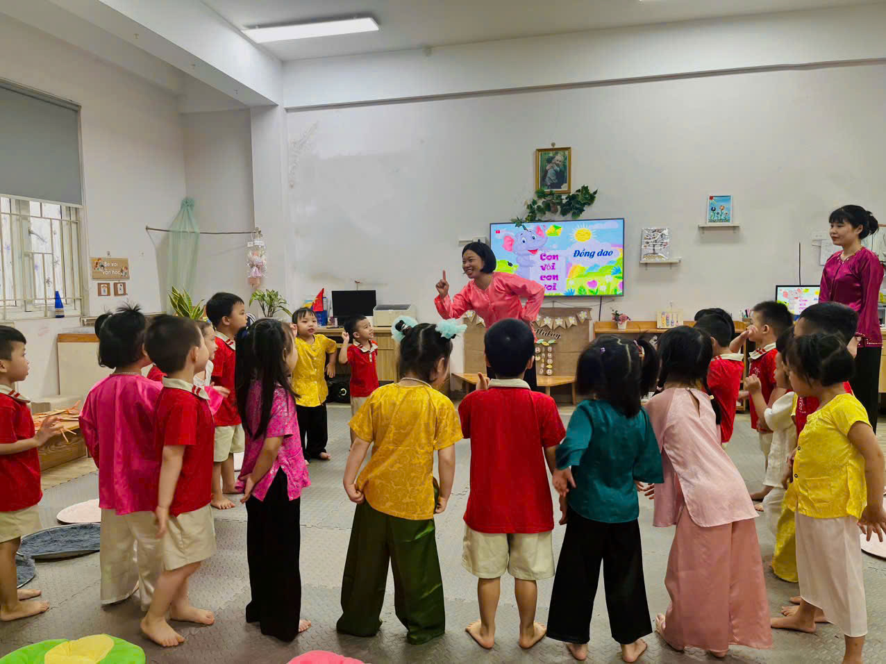 Các hoạt động đã được tổ chức sinh động, phong phú, lồng ghép một cách linh hoạt, nhẹ nhàng với các hoạt động phát triển ngôn ngữ cho trẻ. Đặc biệt, trong thời đại ngày nay, công nghệ phát triển, các cô giáo đã đưa công nghệ thông tin, ứng dụng công nghệ AI vào trong các hoạt động một cách khéo léo và hiệu quả.