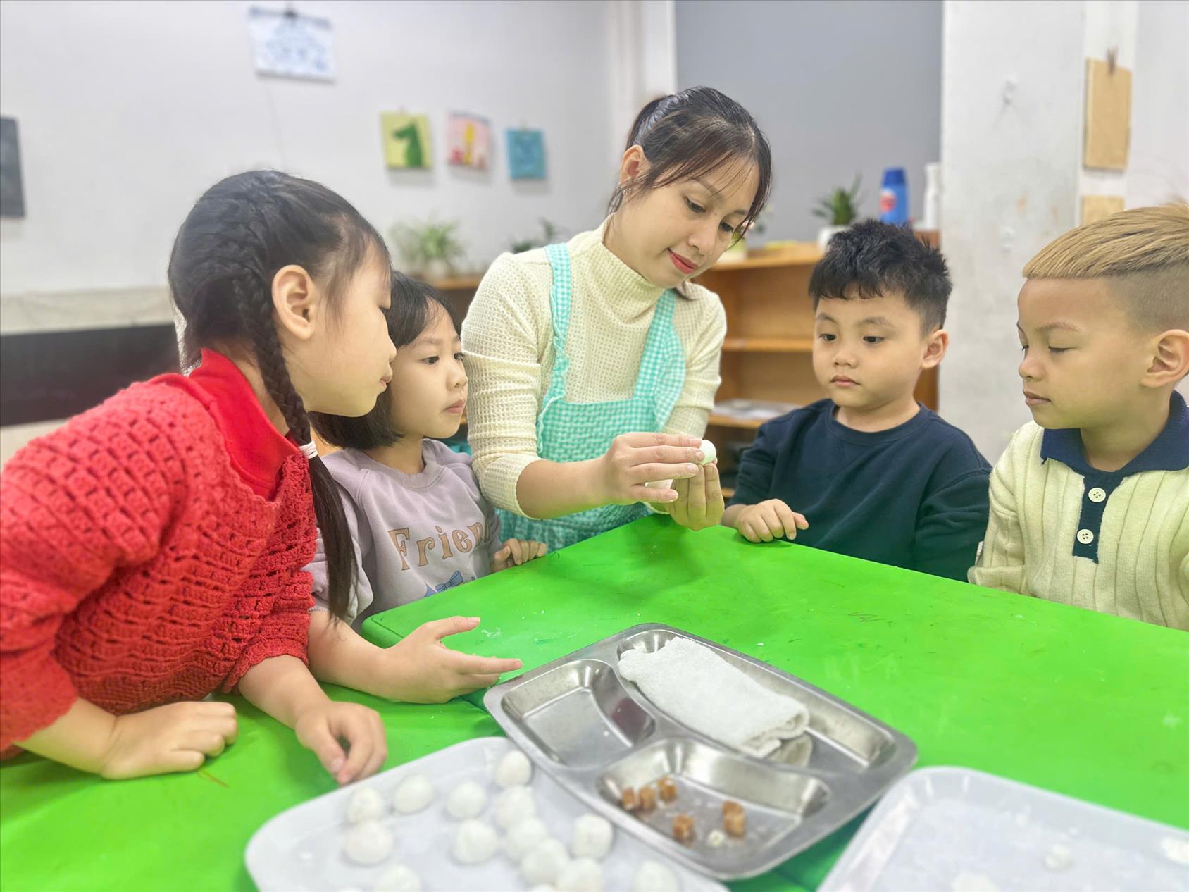 Hoạt động trải nghiệm: Làm bánh trôi đón Tết Hàn thực của các bé Lớp B2 trường Mẫu giáo Số 5.