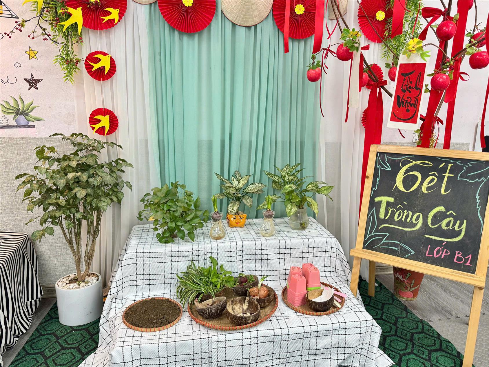 Các bé lớp B1 của trường Mẫu giáo Số 5 tìm hiểu về sự phát triển của cây trong tuần lễ hưởng ứng phong trào "T...