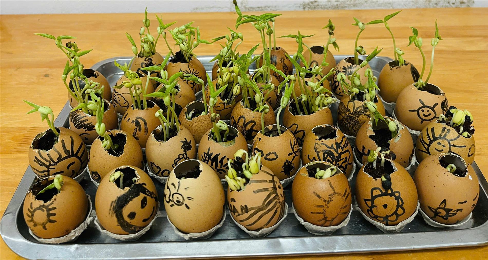 Hoạt động trải nghiệm: "Gieo hạt trong vỏ trứng" của các bé lớp B2.