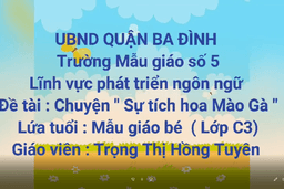 Cô giáo minh huệ giáo viên lớp A4 tổ chức hoạt động LQVH " 05 Chú Vi trùng khó chịu"
