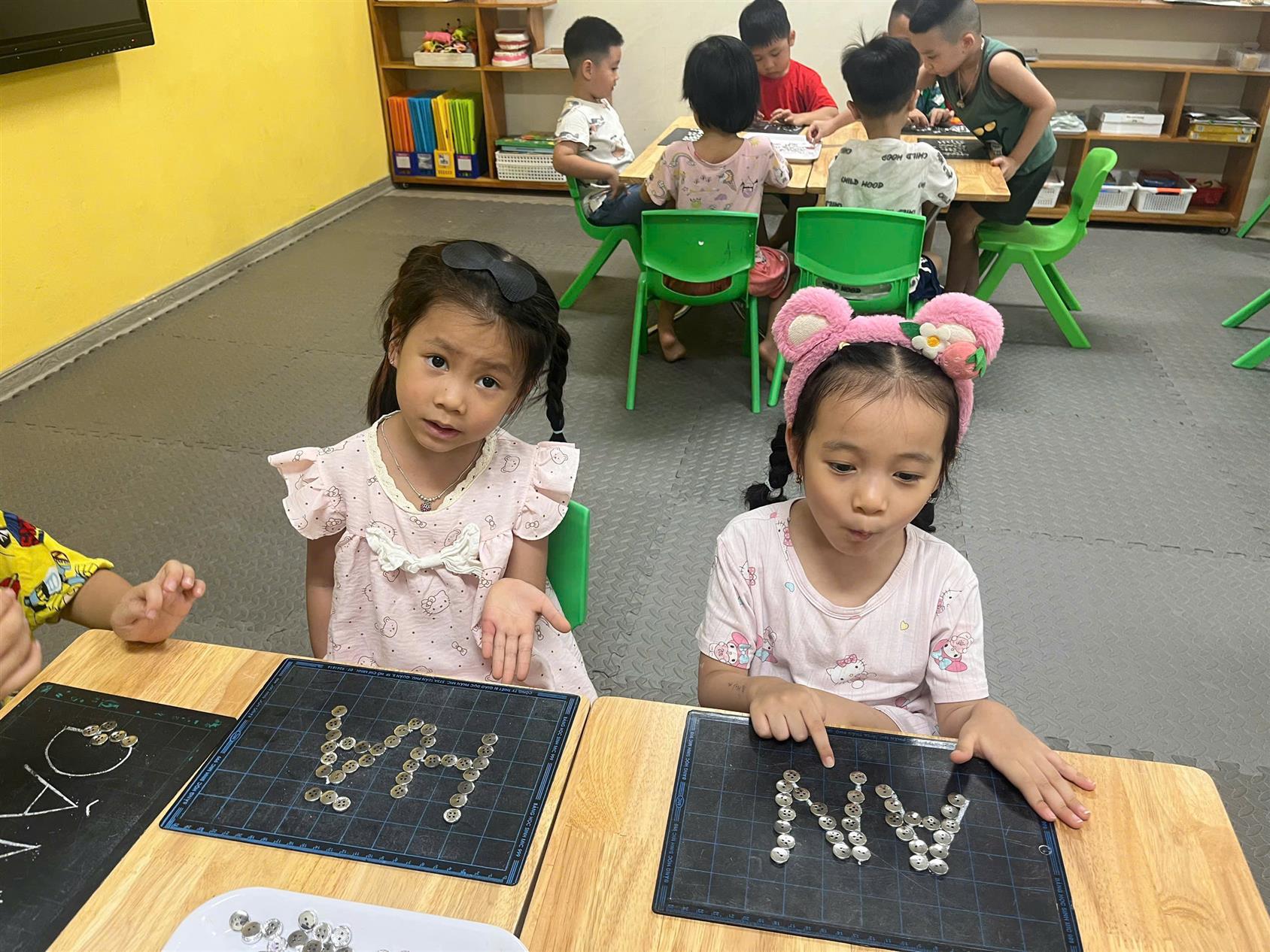 Hôm nay, các bạn nhỏ lớp mẫu giáo lớn A2 đã cùng nhau tham gia hoạt động vô cùng thú vị mang tên “Xếp tên bằng khuy”. Với những chiếc khuy tròn xinh xắn, các bé đã khéo léo sắp xếp để tạo thành từng c...