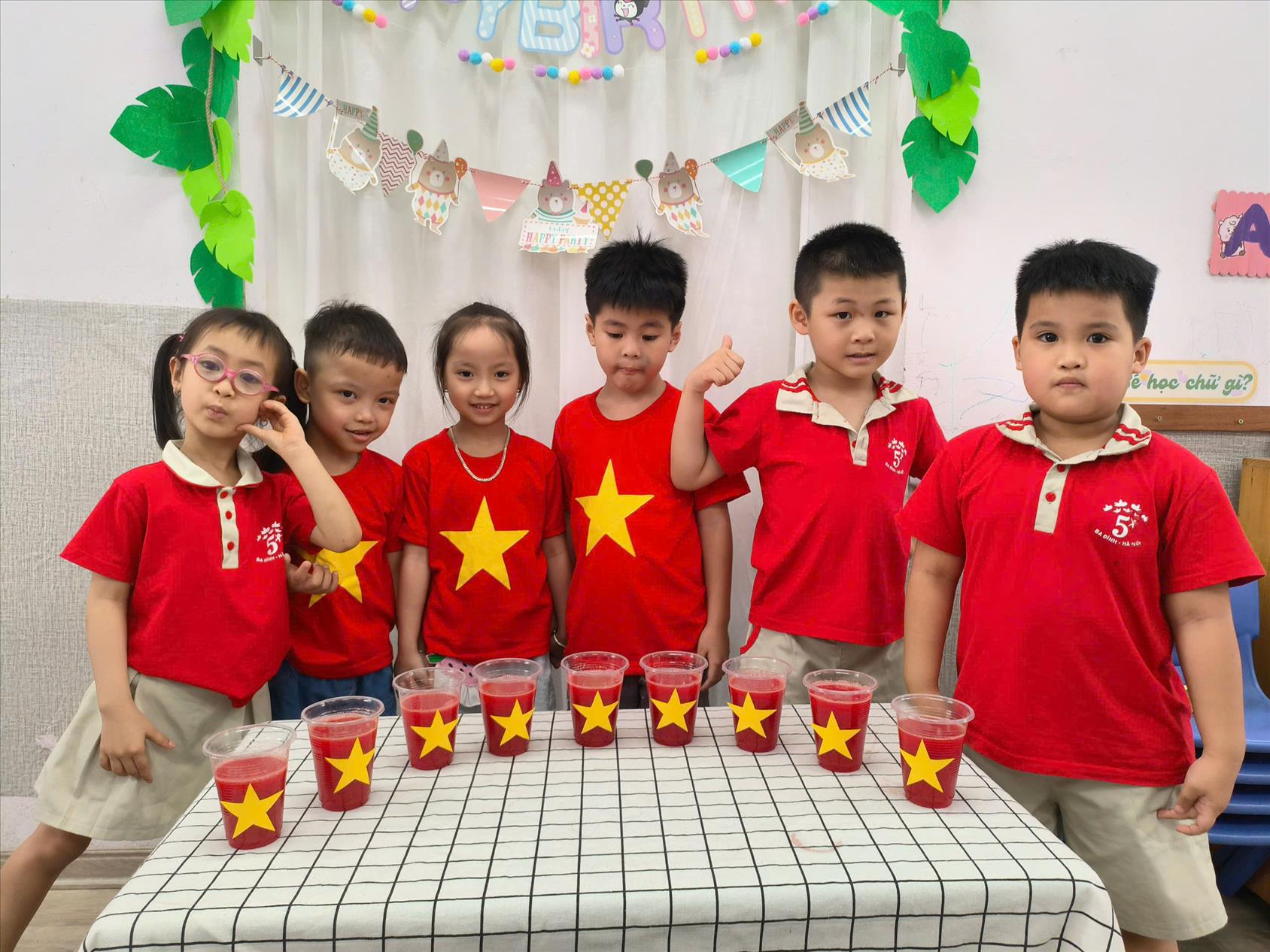 Các bé mẫu giáo lớn A1 làm nước ép dưa hấu thơm ngon và trang trí hình cờ Tổ quốc