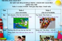Kính gửi các quý cha mẹ học sinh! Để giúp cho cha mẹ không phải suy nghĩ về việc lựa chọn thực đơn cho các bé trong những ngày nghỉ phòng chống dich Covid-19. Trường Mẫu giáo số 5 xin gửi tới quý cha ...