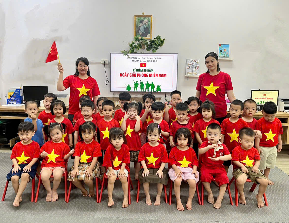 Sáng thứ Hai, ngày 28 tháng 4 năm 2025, toàn trường cùng nhau tham gia chương trình đặc biệt với nhiều hoạt động phong phú, thiết thực, nhằm giúp các bé hiểu thêm về ý nghĩa lịch sử của ngày 30/4, giáo dục lòng yêu nước, niềm tự hào dân tộc và khơi gợi khát vọng hòa bình.