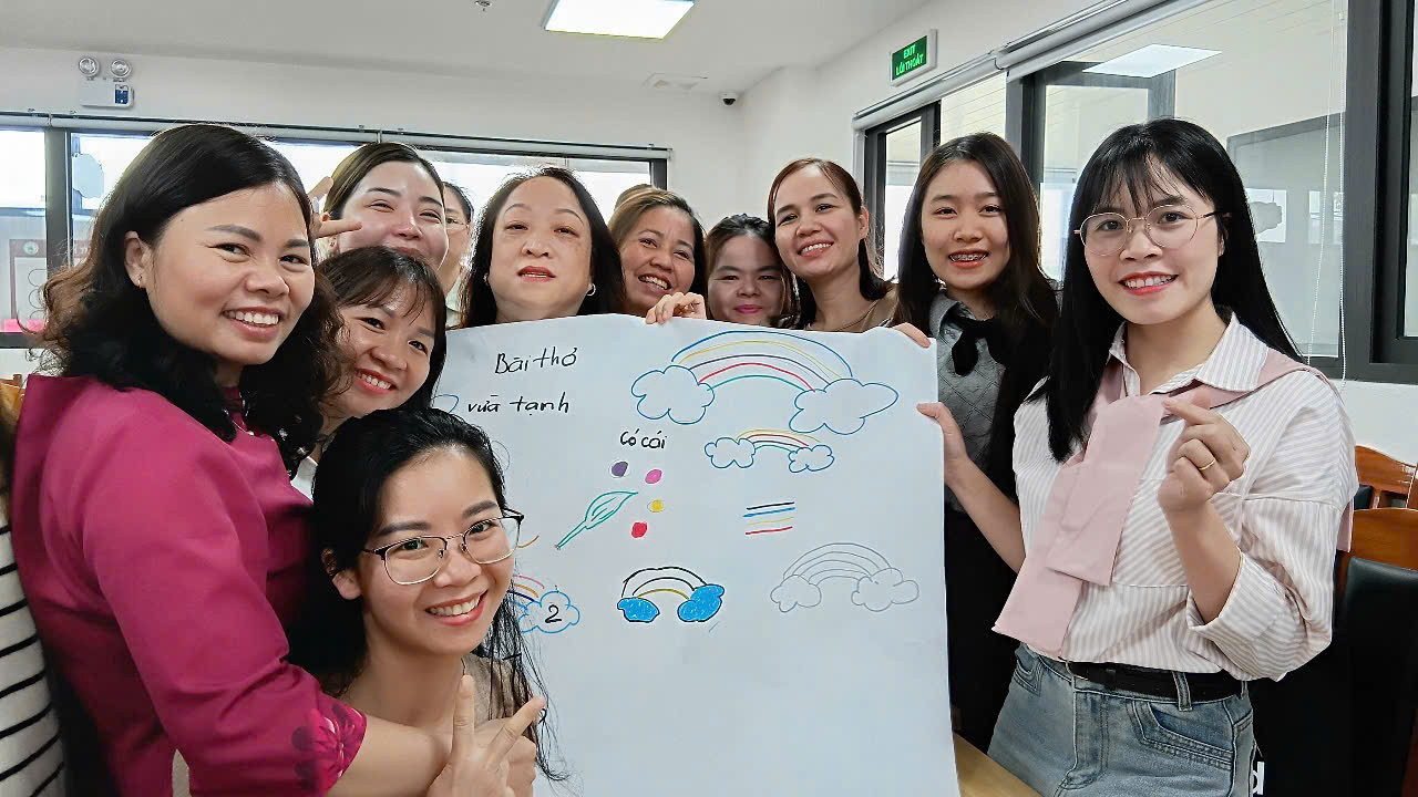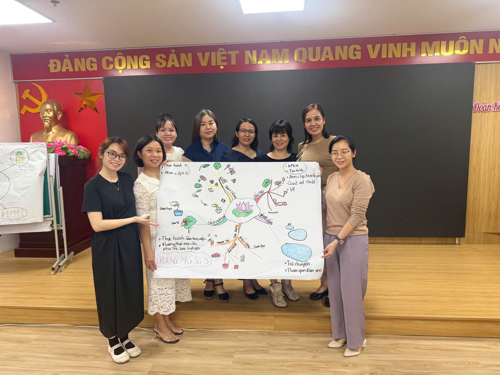 Buổi tập huấn được tổ chức tại Trường Mẫu giáo Mầm non A, quy tụ Ban Giám hiệu và giáo viên từ Trường Mẫu giáo Số 5 cùng 4 trường mầm non bạn trên địa bàn. Dưới sự hướng dẫn tâm huyết và giàu kinh nghiệm của hai giảng viên Đoàn Thị Thuần và Trần Thị Ngoan, các cô giáo đã được tiếp cận và khám phá hai công cụ tư duy trực quan đầy sáng tạo.