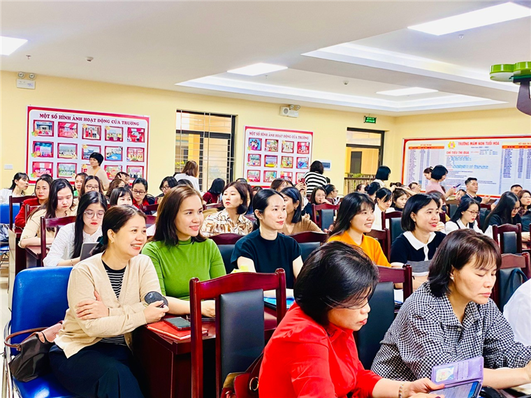 Buổi tập huấn được diễn ra tại trường Mầm non Tuổi Hoa, với sự tham gia của nhiều thầy cô đến từ các trường mầm non, tiểu học và THCS trên địa bàn quận Ba Đình. Tại buổi tập huấn, cô Nguyễn Thị Quỳnh Như - giảng viên đến từ công ty cổ phần Tomotech đã chia sẻ những kiến thức và kỹ năng cần thiết để ứng dụng AI vào công tác truyền thông trong giáo dục.