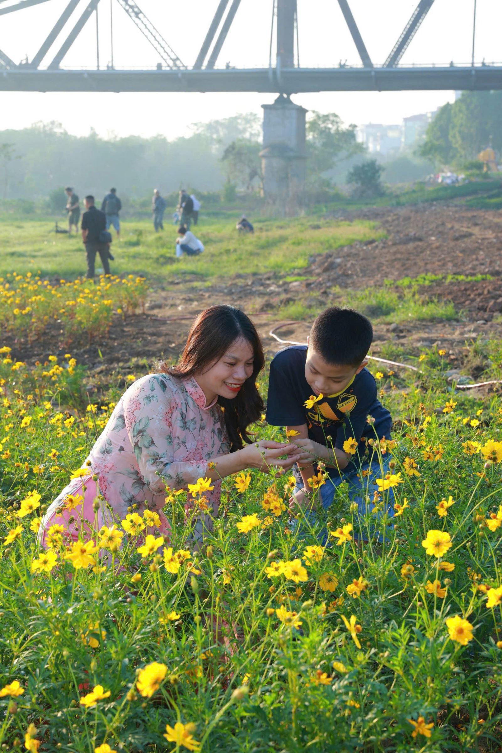 Nằm dưới chân cầu Long Biên, khu vực này từng là một khu đất ngập rác và củi mục. Nhờ sự quan tâm lãnh đạo của quận Ba Đình, sự nỗ lực không ngừng nghỉ của chính quyền và nhân dân phường Phúc Xá, nơi đây đã được biến đổi thành một không gian xanh tươi với vườn hoa cúc rộng hàng nghìn mét vuông. Vườn hoa không chỉ mang lại vẻ đẹp cho khu vực mà còn là biểu tượng cho sự thay đổi tích cực và sự quan tâm đến môi trường sống của cộng đồng.
