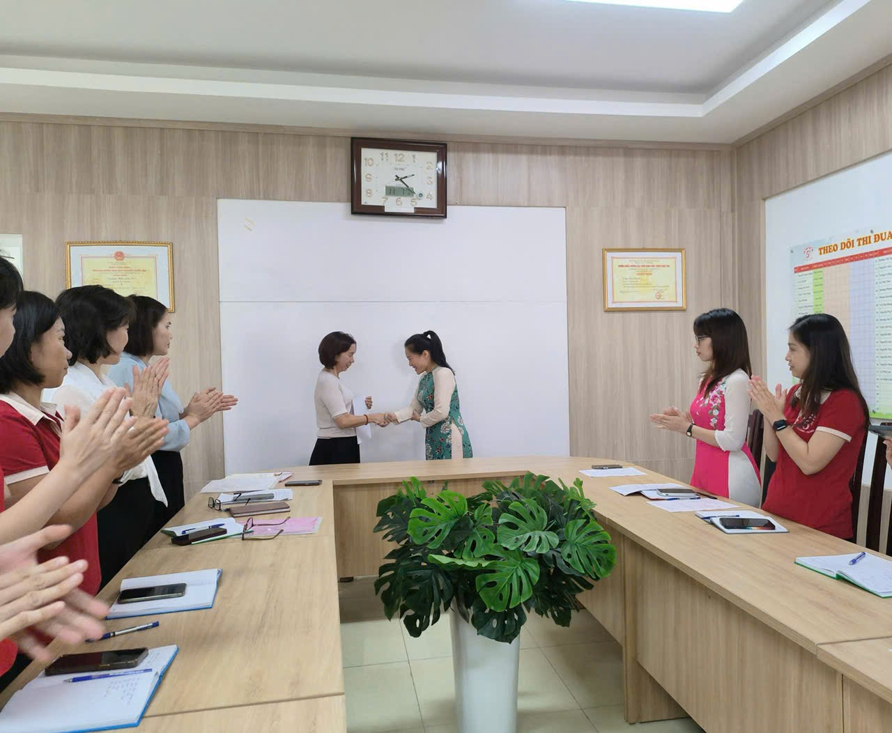 Tham dự lễ công bố và trao quyết định công nhận đảng viên chính thức cho hai đồng chí, có mặt đầy đủ đảng viên thuộc chi bộ Trường Mẫu giáo Số 5.