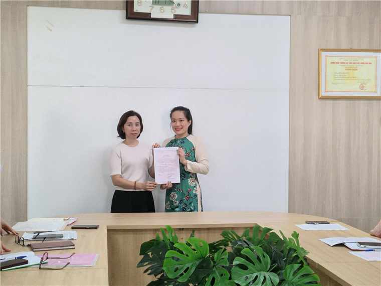 Thay mặt cấp ủy chi bộ, đồng chí Nguyễn Thanh Hằng- Bí thư chi bộ- Hiệu trường nhà trường đã đọc quyết định công bố, trao quyết định và chúc mừng đồng chí Nguyễn Hồng Vân và đồng chí Ngô Thị Hảo đã chính thức được đứng trong hàng ngũ của Đảng. Đồng thời cũng quán triệt hai đồng chí tiếp tục rèn luyện đạo đức cách mạng, phẩm chất chính trị, nâng cao năng lực chuyên môn để hoàn thành tốt nhiệm vụ được giao, phát huy tốt vai trò của người Đảng viên trong việc thực hiện các nhiệm vụ Cấp ủy và tập thể Chi bộ giao.
