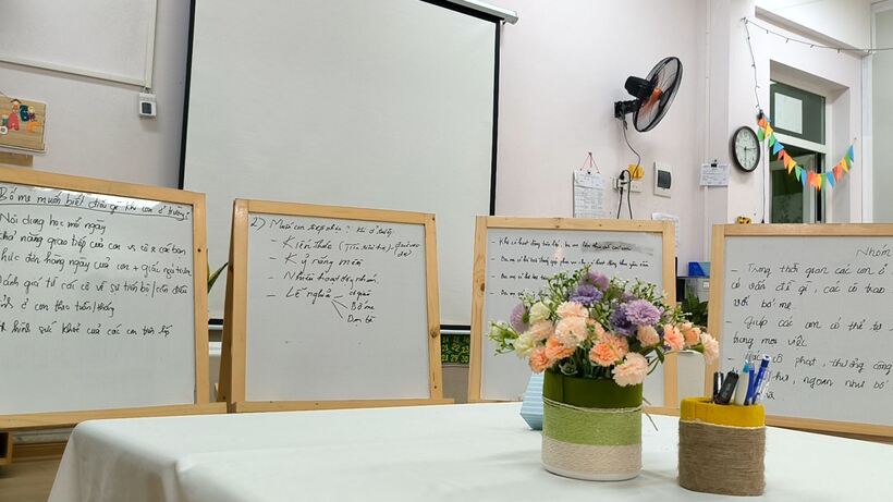 Bảng thảo luận của các nhóm được thực hiện bởi phụ huynh
