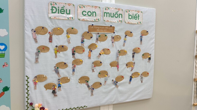 Các phụ huynh đã cùng nhau sôi nổi bàn luận và đưa ra những ý kiến của mình. Đối với câu hỏi Bố mẹ mong muốn các con học được những gì khi ở trường, sau khi lắng nghe những mong muốn của bố mẹ, giáo viên và phụ huynh đã cùng nhau lắng nghe những suy nghĩ của con mà các cô đã giúp các con ghi lại với câu hỏi Con muốn làm gì khi đến trường. Không quá bất ngờ khi mong muốn của các con không hoàn toàn giống với mong muốn của bố mẹ. Trong khi bố mẹ mong muốn các con học được nhiều kiến thức bổ ích, kỹ năng sống… thì các con chỉ đơn giản mong muốn được vui chơi với bạn bè, được tham gia các hoạt động các con yêu thích và tìm thấy được niềm vui ở đó. Sau những tiếng ồ, những nụ cười của bố mẹ là sự thấu hiểu hơn mong muốn và suy nghĩ của các con đối với việc đến trường. Để từ đó, giáo viên và phụ huynh cùng nhau thống nhất sẽ tổ chức cho các con nhiều hoạt động mang tính chất học mà chơi, để các con được vui chơi trong khi vẫn tiếp nhận được những kiến thức cần thiết. Bên cạnh đó, các con cũng cần được trang bị dần những kiến thức, hành trang để vững vàng bước vào lớp 1.