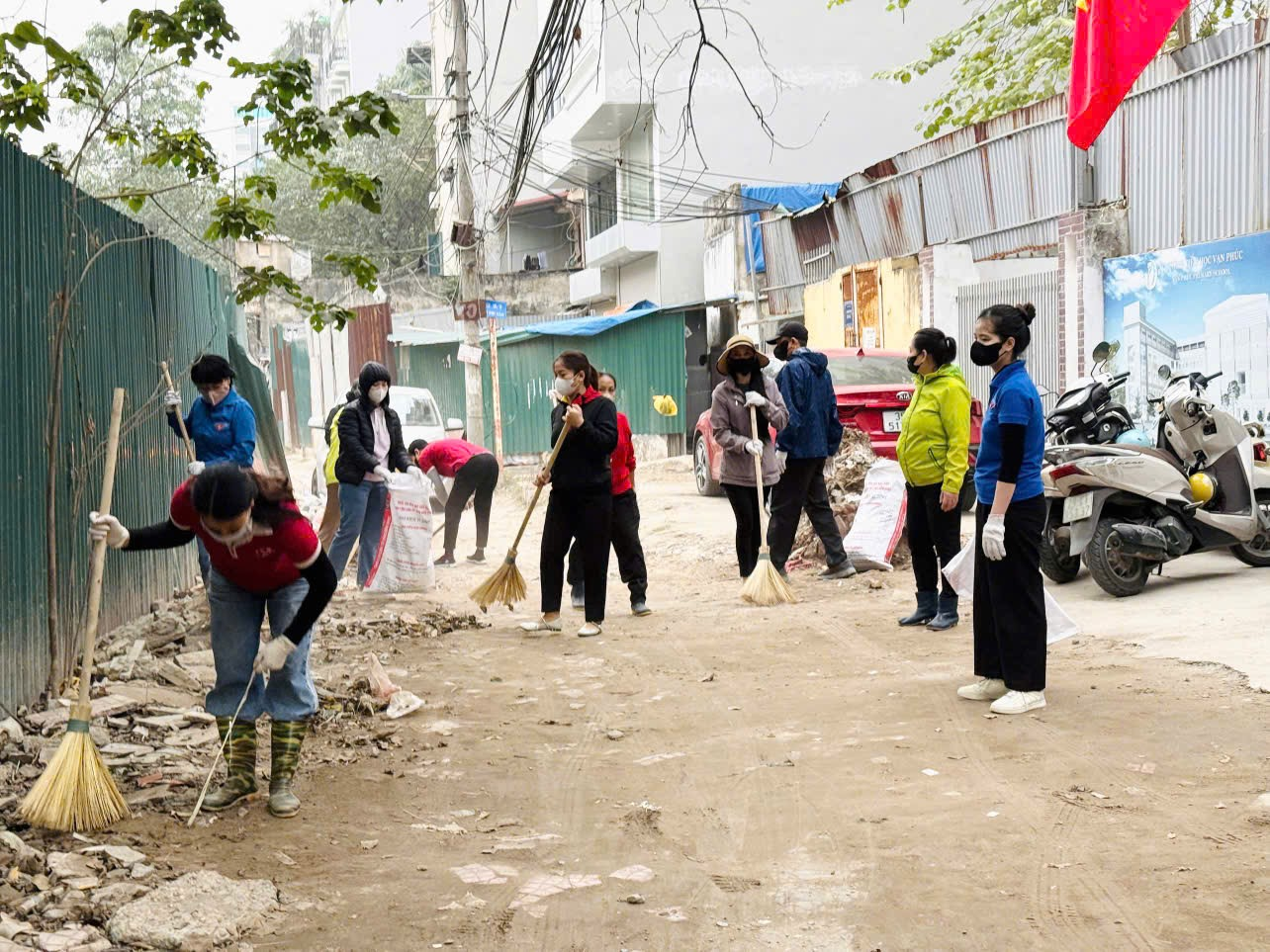 Các đồng chí tham gia sử dụng trang phục phù hợp cho hoạt động lao động; các dụng cụ hỗ trợ như găng tay, bao tải, chổi, xẻng được UBND phường chuẩn bị đầy đủ, chu đáo.