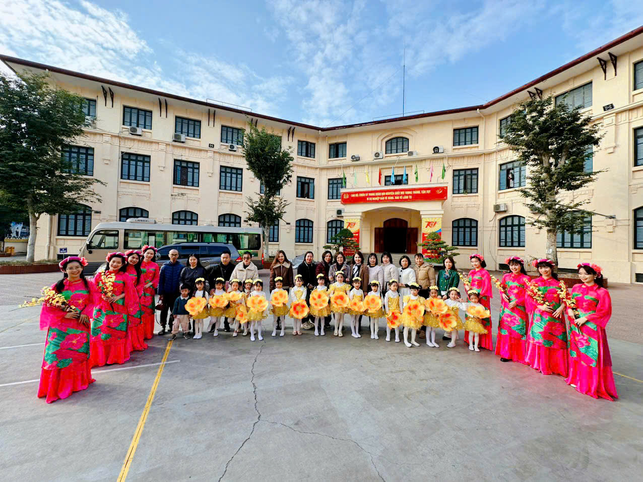 Tiết mục múa "Đón xuân - Như hoa mùa xuân" do các cô giáo và học sinh cùng thực hiện, đã mang đến không khí mùa xuân tươi vui, rộn ràng. Với những điệu múa uyển chuyển, trang phục rực rỡ và những nụ cười rạng ngời trên khuôn mặt các bé, tiết mục đã tạo nên một bức tranh xuân sống động và đầy cảm xúc.