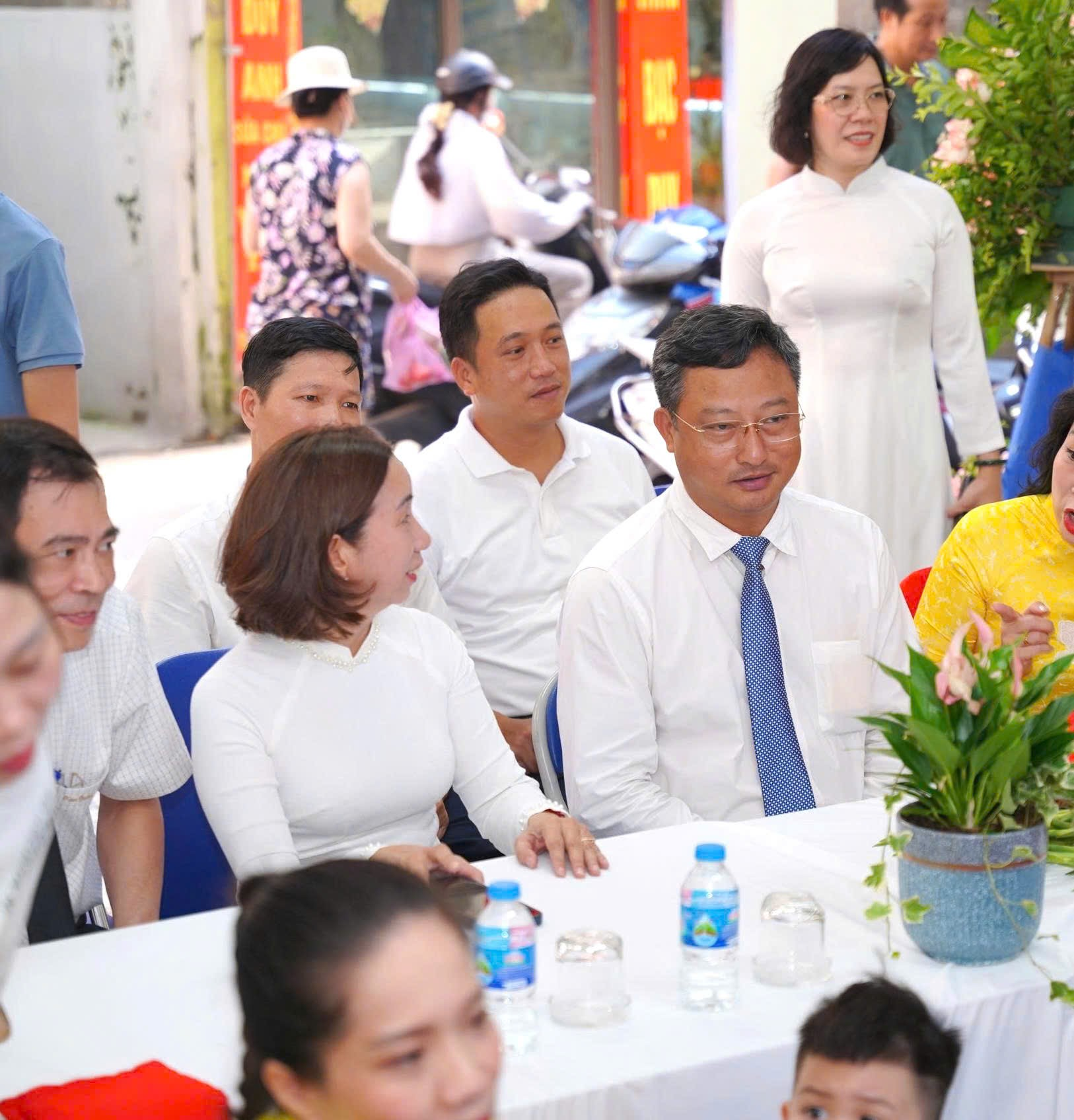 Đại diện lãnh đạo phường Ngọc Hà tặng hoa và chúc mừng nhà trường nhân dịp năm học mới.