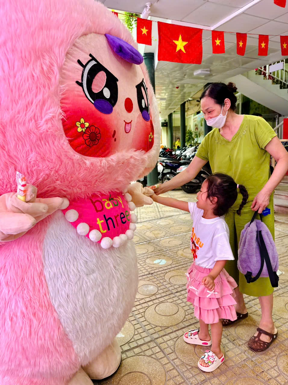Khi được chính các nhân vật mascot đáng yêu trao tận tay những món quà nhỏ, các bé cảm thấy mình được quan tâm và trân trọng. Món quà lúc này không chỉ là một vật chất, mà còn là biểu tượng của sự chào đón và yêu thương, món quà nhỏ xinh mà các cô, các bác dành tặng cho các bé: chiếc kẹo ngọt sắc mầu. Cảm giác đặc biệt này giúp trẻ tự tin hơn, hào hứng hơn khi bắt đầu một ngày học mới.