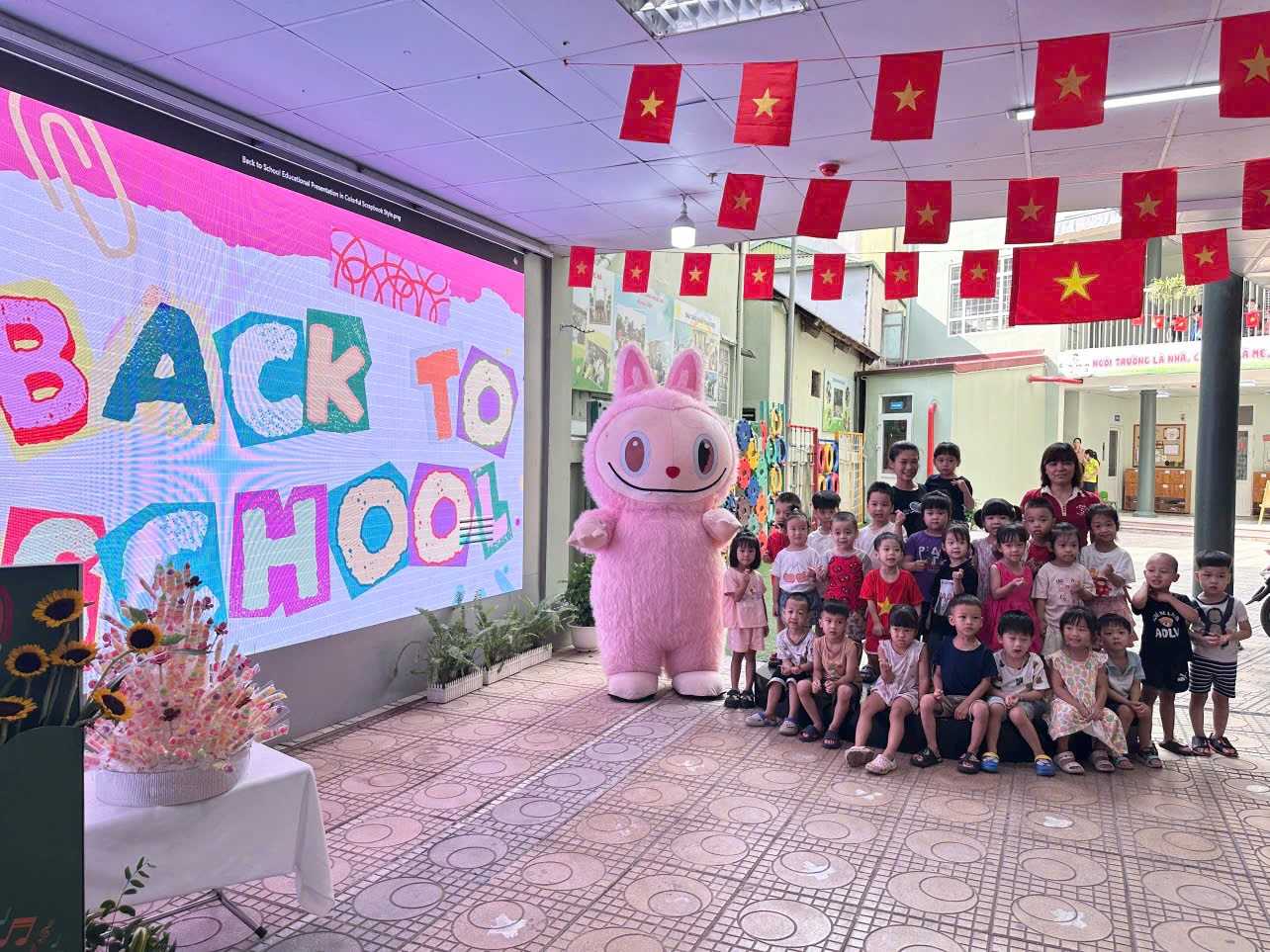 Sự hiện diện của các nhân vật mascot giúp thế giới tưởng tượng của trẻ trở nên sống động hơn bao giờ hết. Sau buổi chào đón, các bé sẽ có vô vàn câu chuyện để kể cho nhau, từ đó kích thích khả năng sáng tạo và ngôn ngữ. Những câu chuyện về "chú thỏ tai cụp" hay "chú Labubu" sẽ trở thành một phần của kỷ niệm đáng nhớ trong suốt năm học. Đây chính là điểm nhấn, là một kỷ niệm đẹp, góp phần tạo nên một ngày đầu năm học thật đáng nhớ, giúp các bé có thêm động lực để học tập và khám phá thế giới xung quanh.