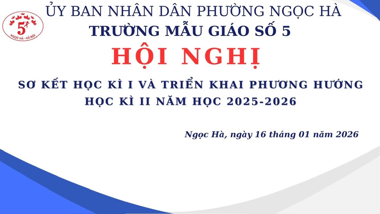 Sáng ngày 16/1/2026, Trường Mẫu giáo Số 5, phường Ngọc Hà tổ chức thành công “Hội nghị Sơ kết học kỳ I năm học 2025 – 2026”. Đây là dịp để tập thể sư phạm nhà trường cùng nhìn lại những nỗ lực không n...