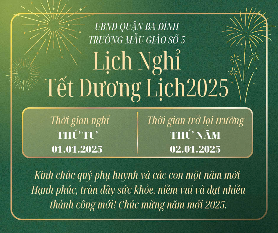 Lich nghỉ Tết Dương lịch 2025 trường Mẫu giáo Số 5