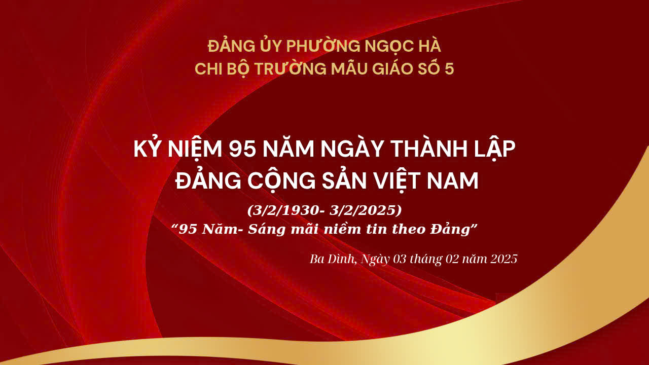 Sáng ngày 03 tháng 02 năm 2025, hoà chung không khí mừng Đảng, mừng Xuân của cả nước, Chi bộ Trường Mẫu giáo Số 5 đã tổ chức Lễ kỷ niệm 95 năm Ngày thành lập Đảng Cộng sản Việt Nam (03/02/1930 - 03/0...