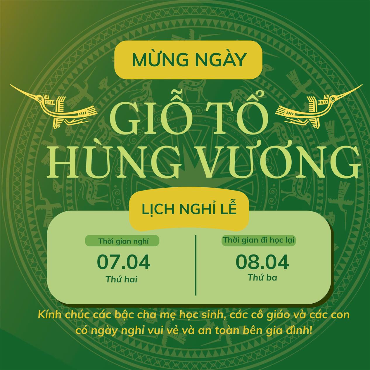 Trường Mẫu giáo Số 5 trân trọng thông báo về việc nghỉ lễ Giỗ Tổ Hùng Vương (10 tháng 3 âm lịch)
