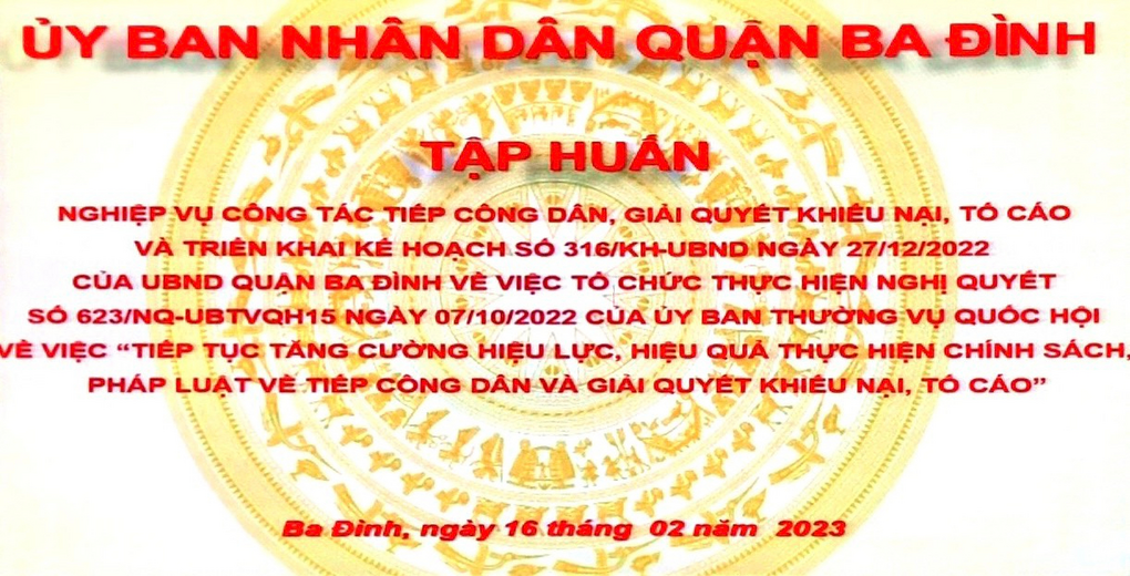 Sáng ngày 16/2/2023, UBND quận Ba Đình tổ chức lớp tập huấn hướng dẫn nghiệp vụ công tác tiếp công dân, giải quyết khiếu nại, tố cáo. Đồng chí Nguyễn Huỳnh Thu Cúc Bí thư Chi bộ - Hiệu trưởng nhà trườ...