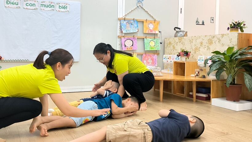 Học sinh lớp Mẫu giáo lớn A2 thực hiện kỹ năng thoát hiểm