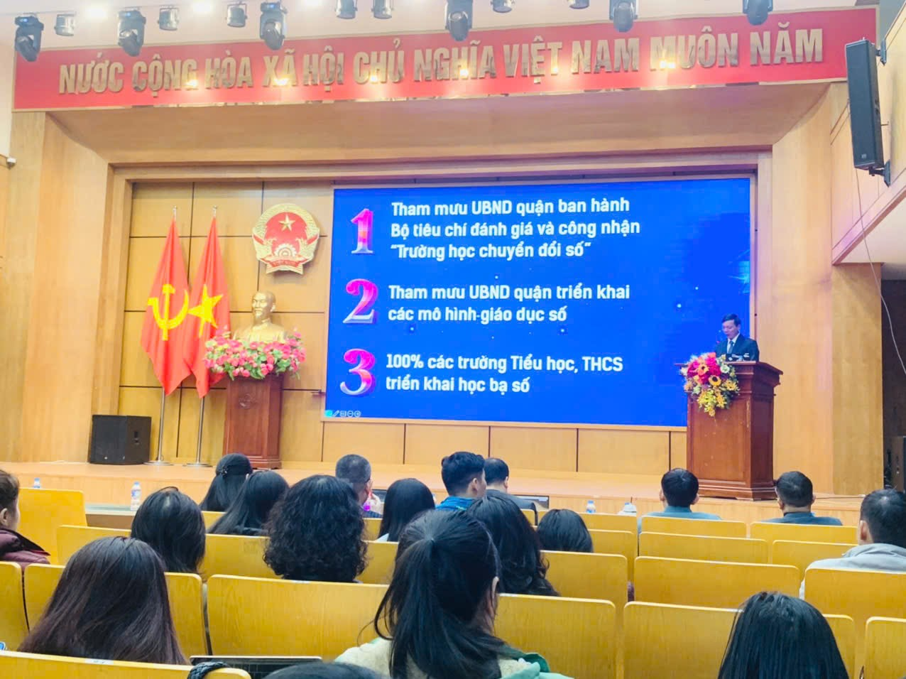 Ông Nguyễn Như Tùng- Phó trưởng phòng GD và ĐT quận Ba Đình chia sẻ một số thành tựu của ngành GD Ba Đình khi ứng dụng AI.